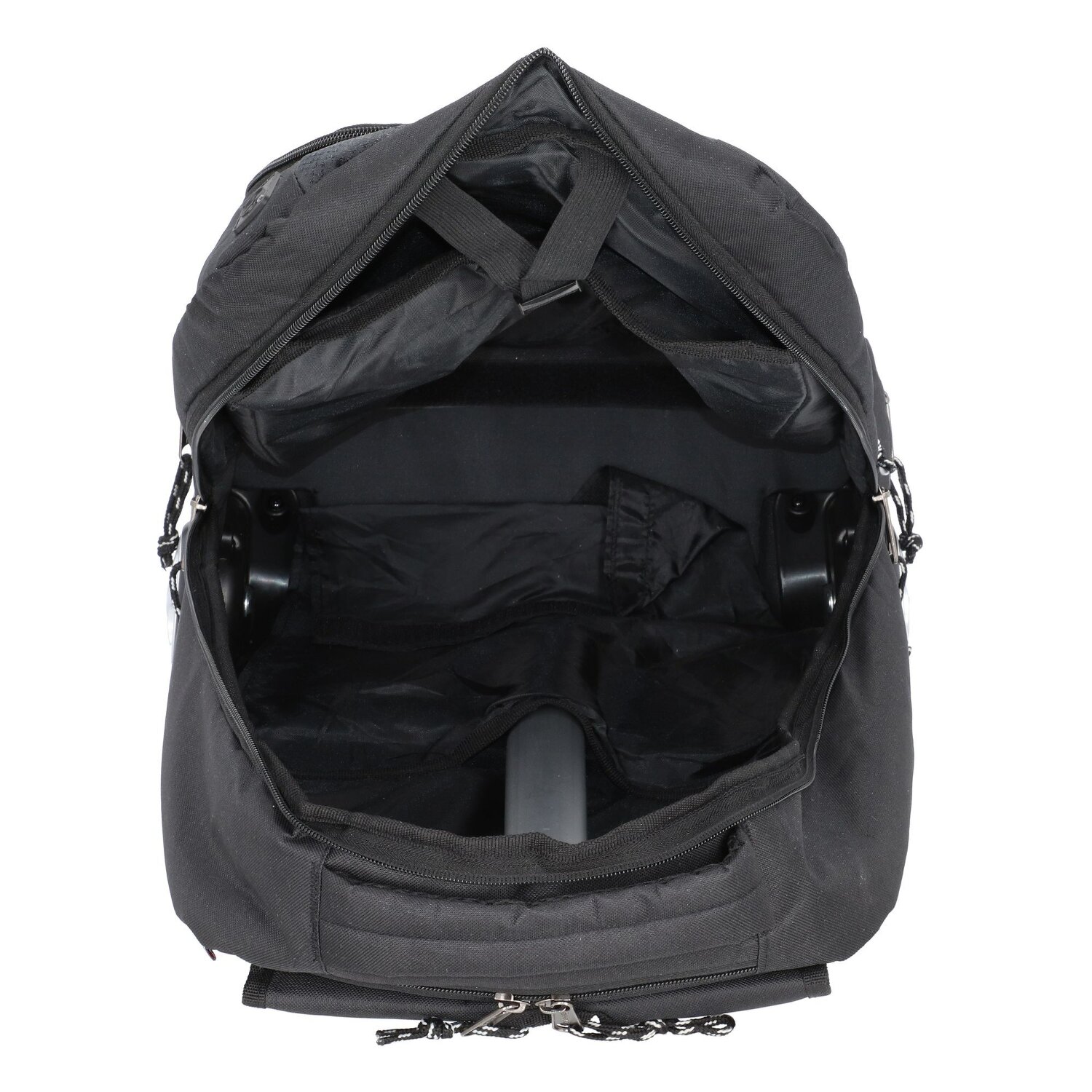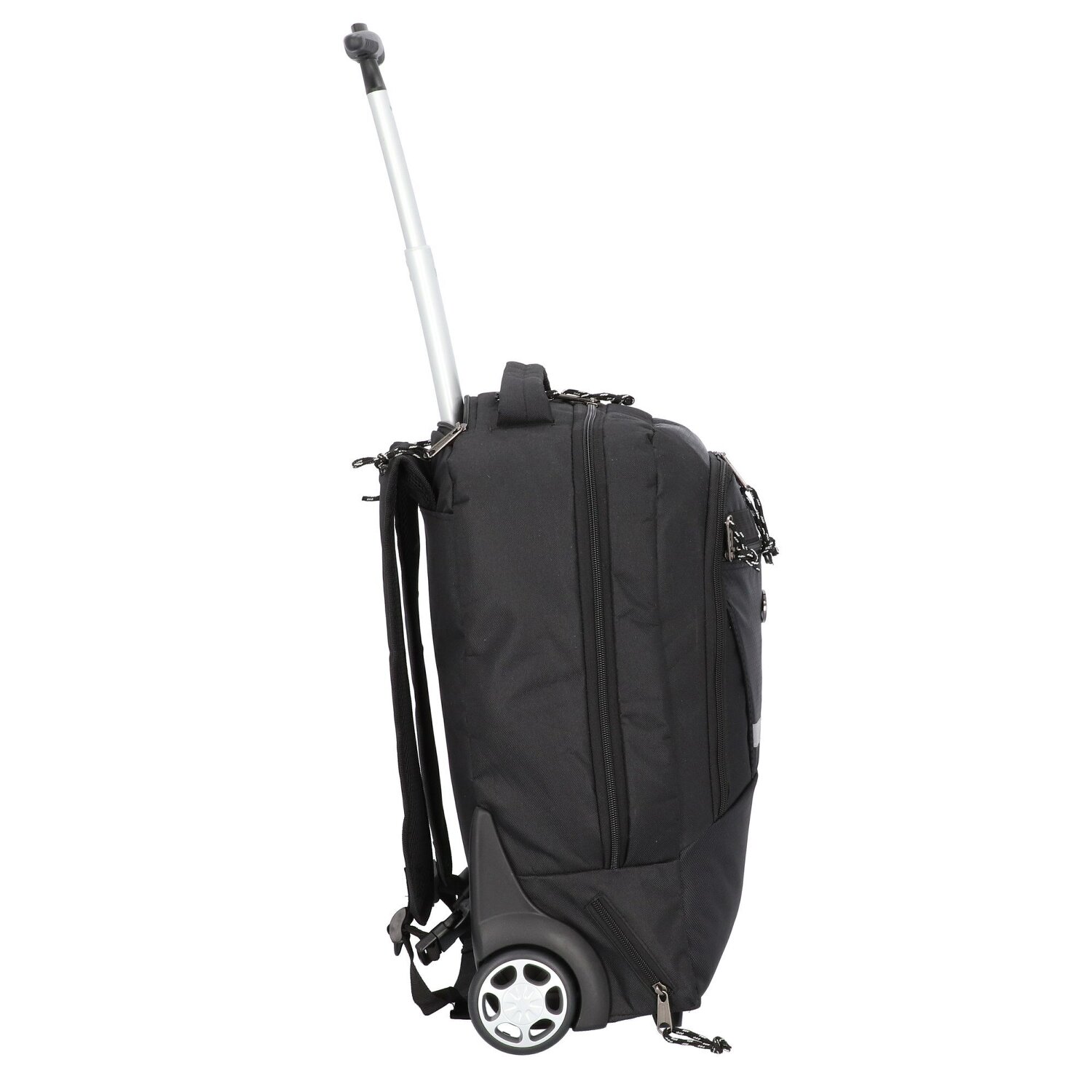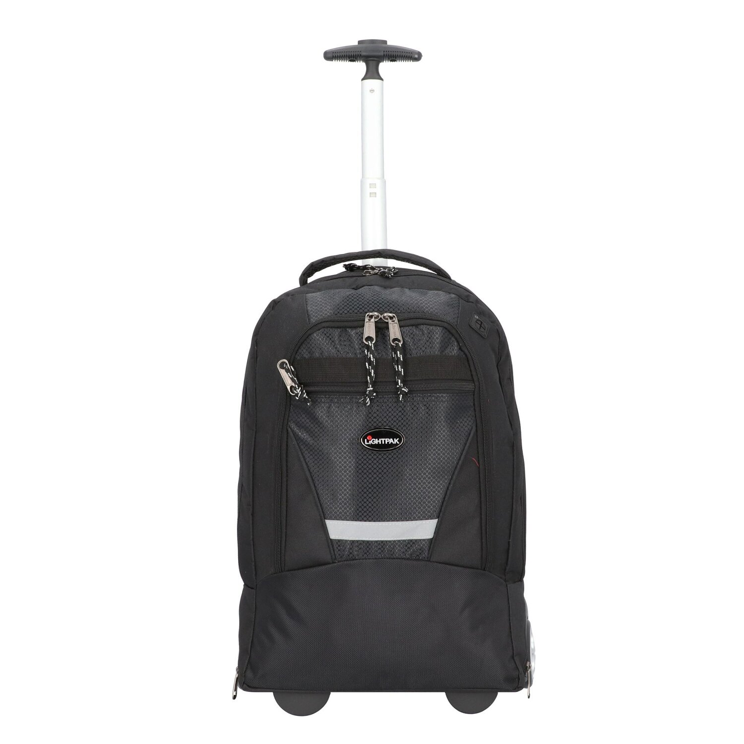 Practical 2 roll backpack trolley from Lightpak. Thanks to wheels and lockable telescopic handle, it can be used comfortably as a trolley. The padded shoulder straps allow comfortable carrying even with heavy weight. When using the trolley function, the shoulder straps can be stored in a compartment on the back. With a spacious main compartment, the backpack trolley offers plenty of space and an optimal overview. It also has a padded laptop compartment, a large front pocket with organizer and other side pockets for valuables, cables, pens and more.