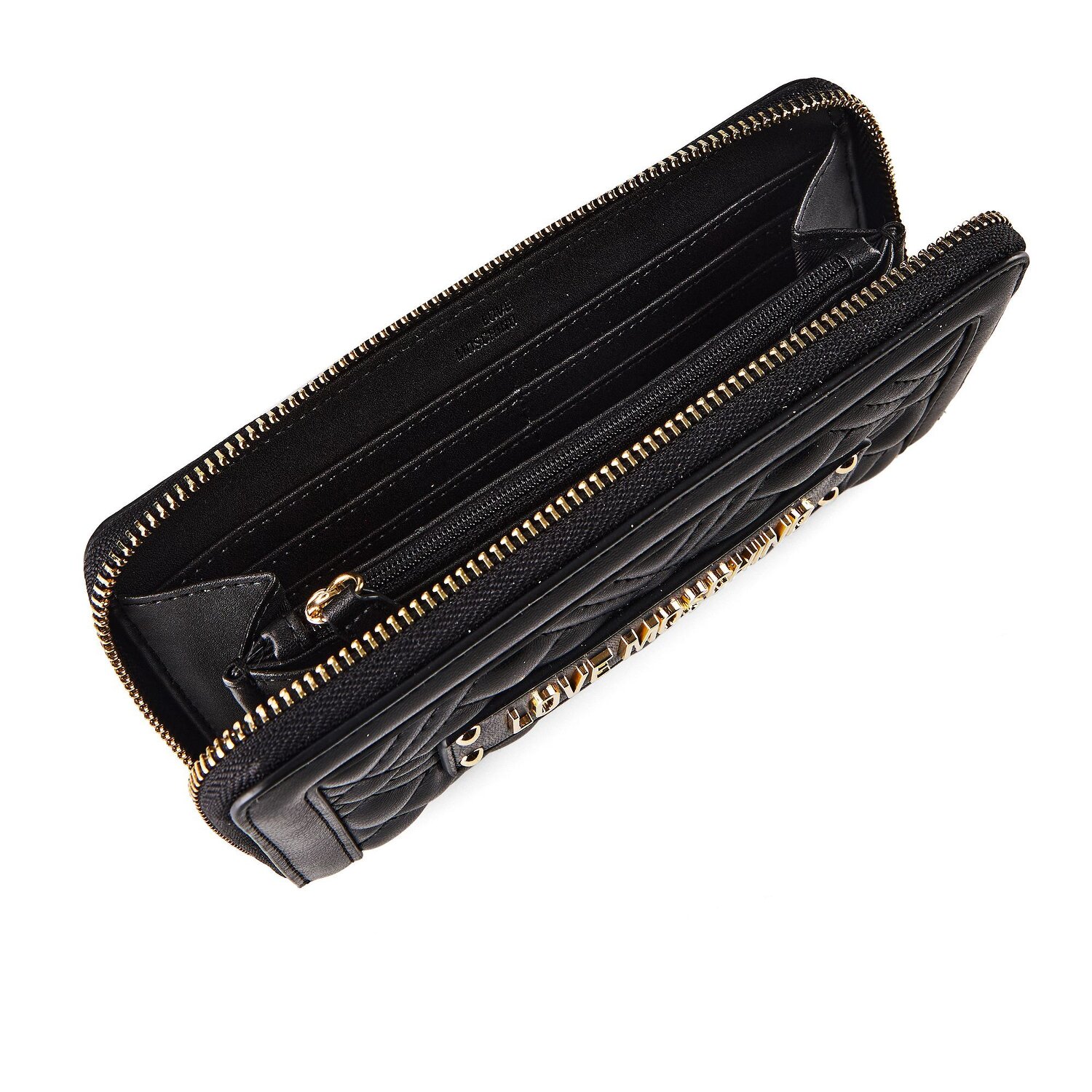Introducing the world of Love Moschino with the Quilted women's wallet, a contemporary garment for your financial essentials. Unfolded in a horizontal silhouette, this accessory features 8 credit card slots, 2 bill compartments, 2 slip pockets, and a coin pocket - one place for everything. Security-conscious, a zipper closure keeps your belongings secure. The garment is a composition of tough polyurethane that stages a robust, durable and flexible shell that can withstand the daily triathlon. With practicality and style, this is the purse for the modern lady. Treat yourself, because fashion is not just a trend sprint, but a life marathon.