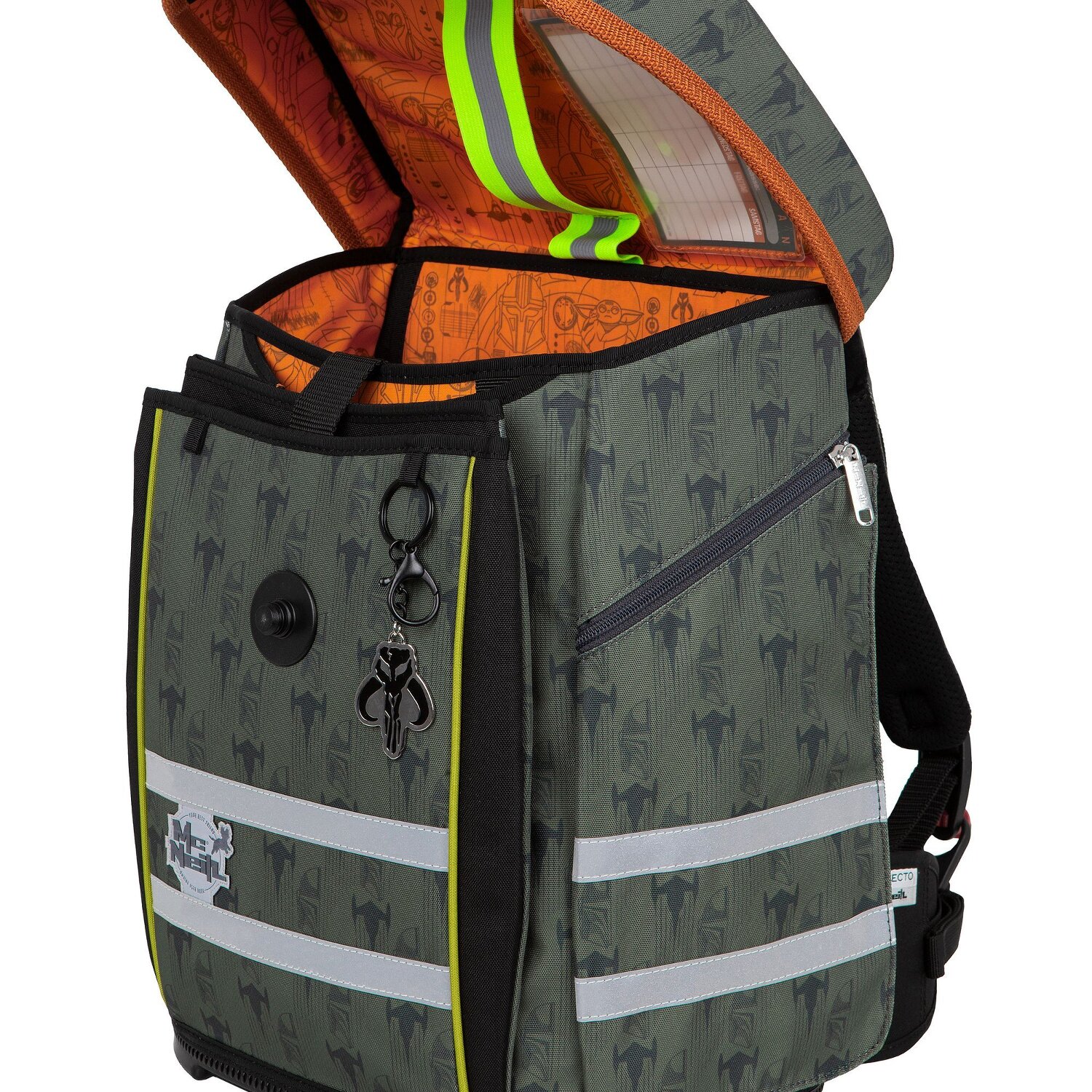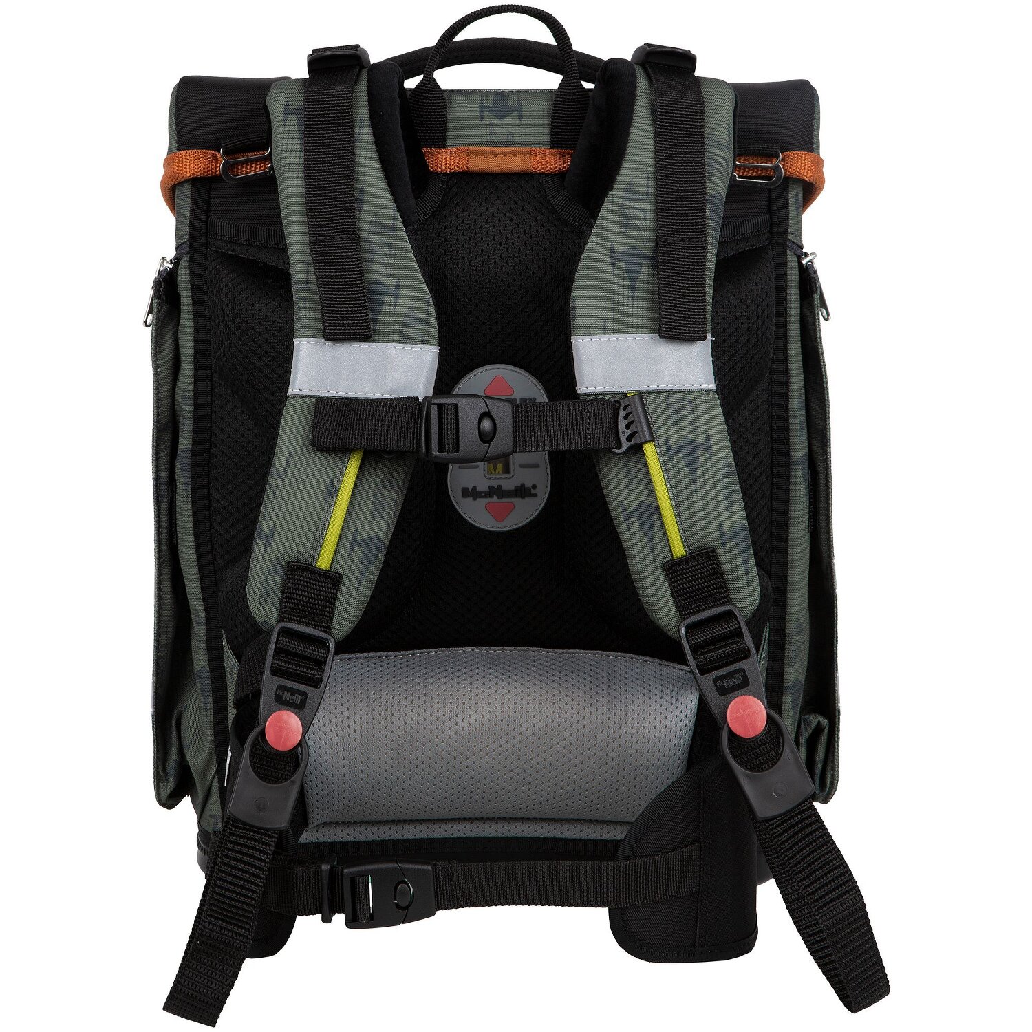 5-piece school bag set from McNeill, consisting of school bag, sports shoe bag, pencil case filled, pencil case and a removable / interchangeable McAddy to customize your school bag. Top wearing comfort due to the breathable back padding, height-adjustable straps and pelvic and chest straps. The satchel has a stylish, reflective magnetic lock that closes very smoothly as if by itself. Spacious side pockets can be used for the water bottle or other souvenirs for school. Satchel outer dimensions: 30 cm x 22 cm x 38.5 cm / Empty weight: approx. 1,250 g / Volume: approx. 22 l