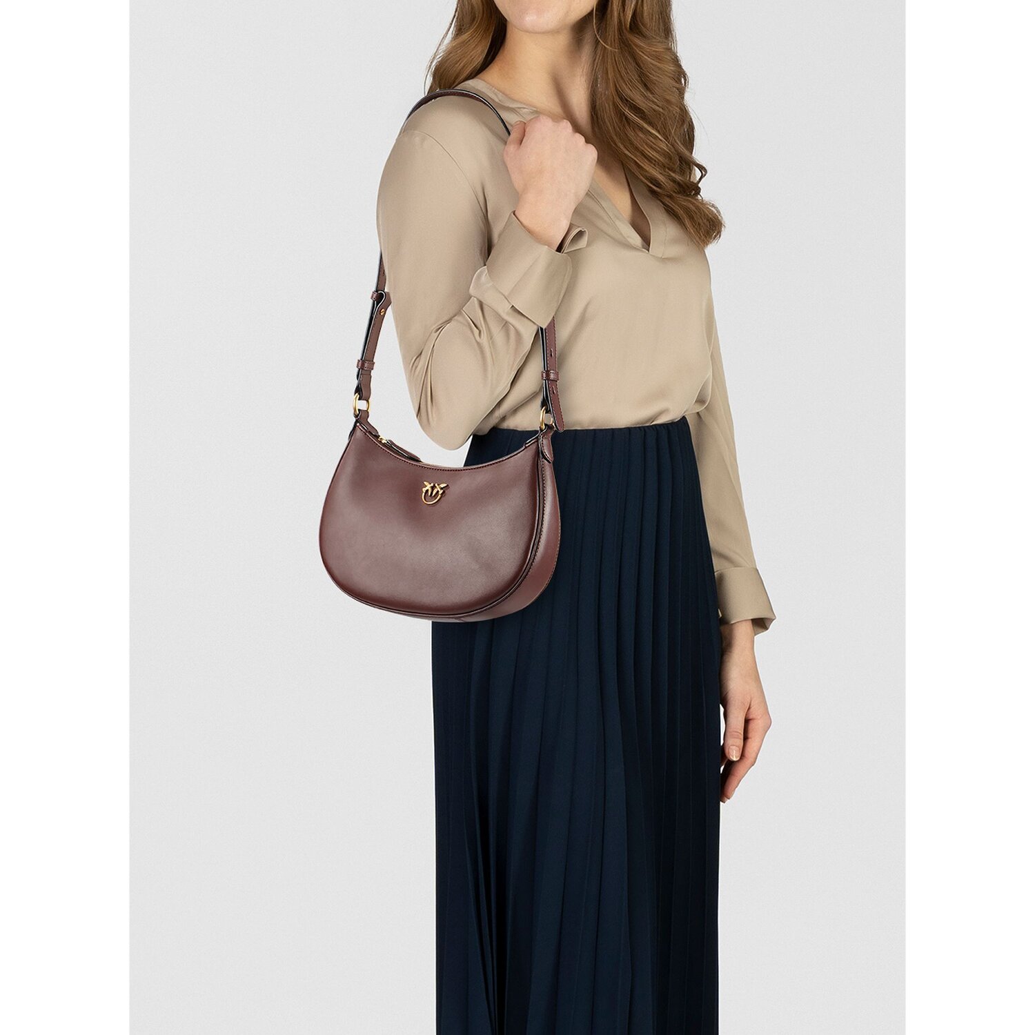 Indulge in luxury with this exquisite shoulder bag from PINKO's Half Moon range. Styled for the modern woman, this bag promises to be an accessory of inestimable style value. Crafted from a high quality leather, the bag has a fine, comfortable feel. Its practical zipper closure provides a secure yet effortlessly accessible space, supported by additional compartments for your phone and other small items. Whether sporty or chic, its comfortable medium-length shoulder strap offers a variety of carrying options. Don't hesitate to enrich your wardrobe with this unique piece.