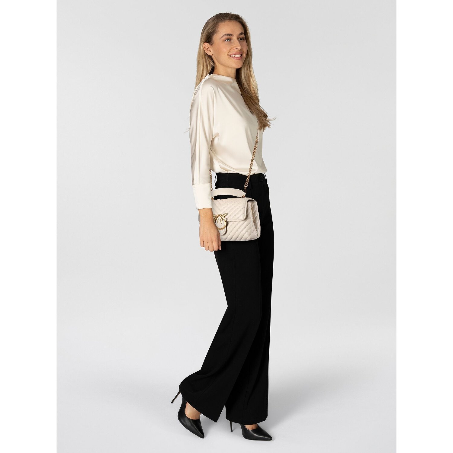Simple but elegant leather shoulder bag from Pinko with an adjustable shoulder strap. The main compartment offers enough space for all kinds of everyday items and has a zipped pocket and a slip pocket for better organization.