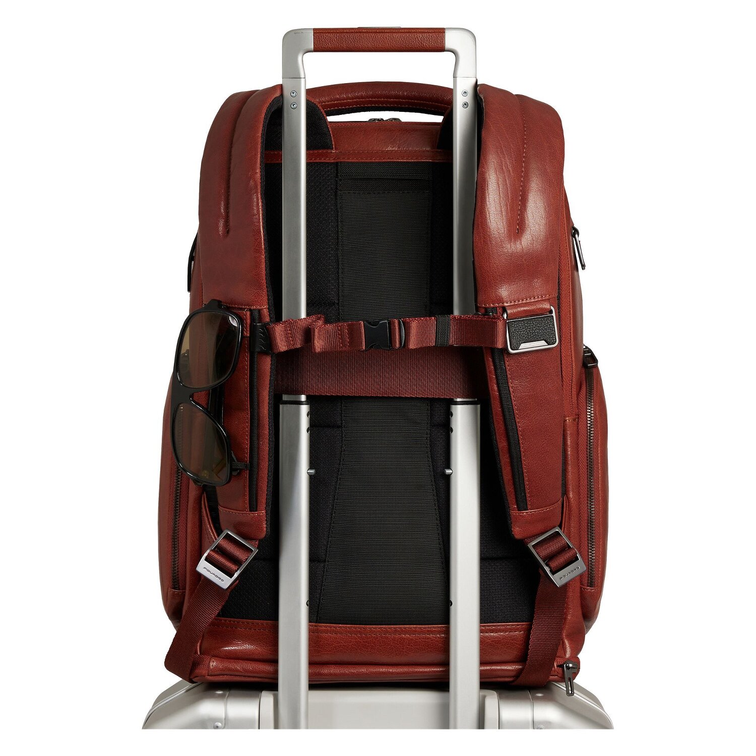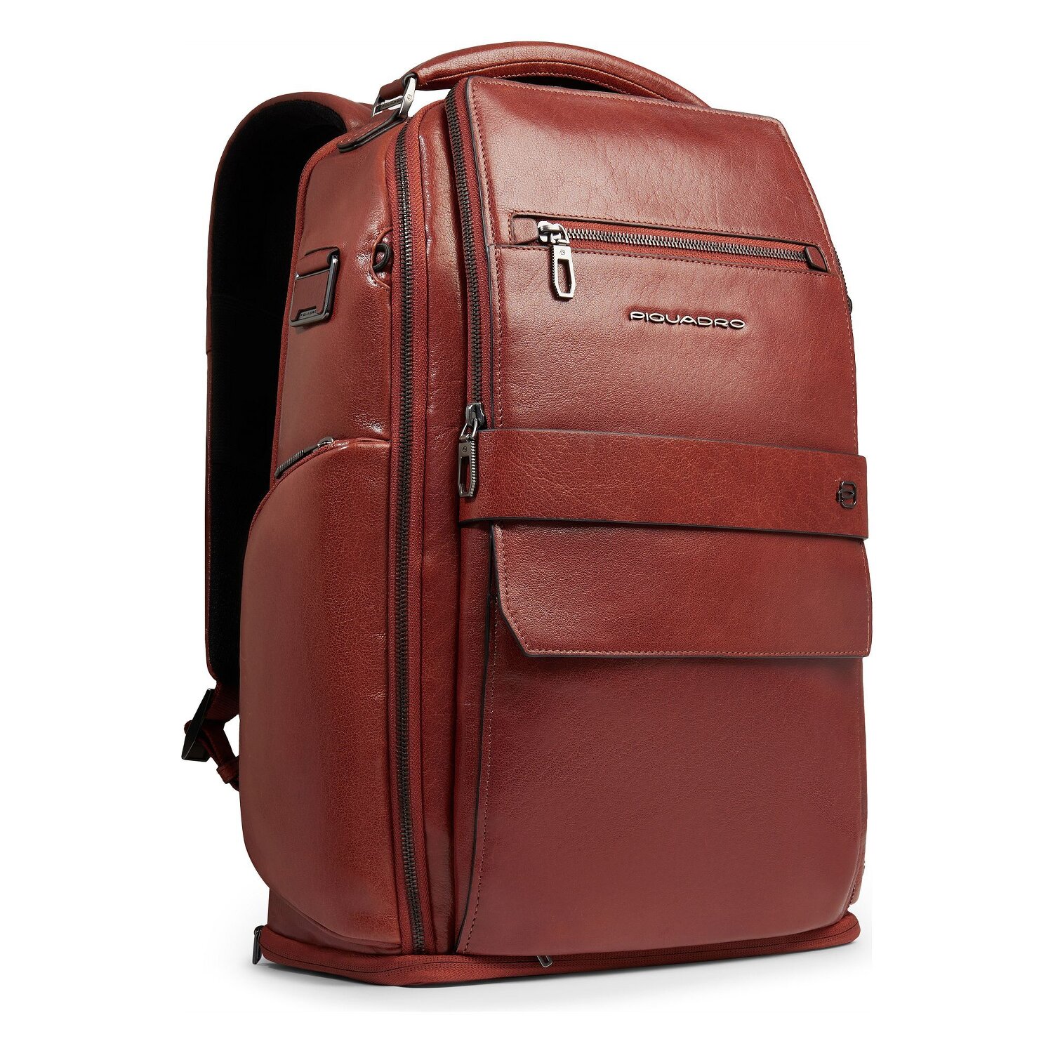 The smart daypack from the Solm series by Piquadro is more than just a rucksack. Made from the finest leather, this all-rounder boasts useful features such as a glasses loop, a water bottle compartment and even a connection option for a USB power bank. The spacious interior with two main compartments offers enough storage space for A4 documents thanks to the cross-body strap and has pen pockets and a practical laptop compartment for devices up to 43 cm. And the best thing about it? It's even a loyal companion when traveling - simply put it on the trolley and off you go! See this unisex backpack for yourself - functional, robust and incredibly stylish.