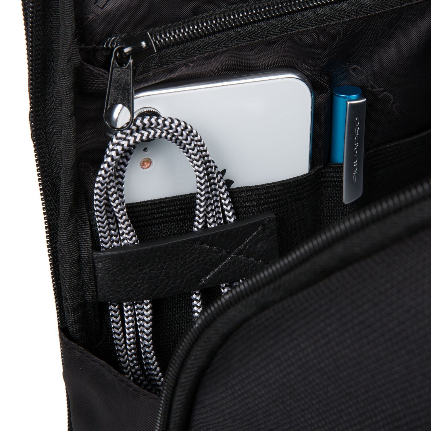 - Features: Zipper compartment, Mobile phone holder, Inside pocket(s), Exterior pocket(s)
