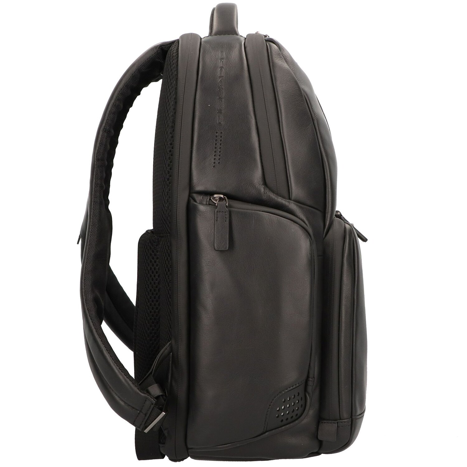 Modern design and sophisticated functionality make this noble business backpack from Piquadro the ideal companion at work or when traveling. With protected zipper, padded compartment with space for laptops with screen diagonal up to approx. 39.5 cm (15.6 inch), tablet compartment, further side compartments for cell phone, valuables and more as well as glasses, pen holder, and RFID protection against data theft. A holder allows it to be slipped onto the extension handle of a trolley. The backpack is also equipped with Connequ function. Piquadro's bags and cases with Connequ function communicate with your smartphone via the Connequ app and a Bluetooth connection. The practical and at the same time stylish companion for everyday work or business travel.