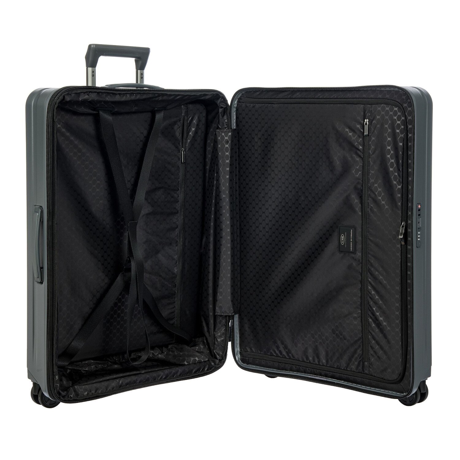 Step into the spotlight of the travel world with the Porsche Design hard-shell case from the coveted Roadster series, masterfully balanced on four wheels. Made from robust polycarbonate, it guarantees durability and protection to the highest degree. Its unique comfort is reflected in a lockable handle, a zippered compartment and a laundry compartment. Thanks to the expansion pleat, it stows more than meets the eye. A cross-body strap and a divider/packing plate keep the interior tidy and its TSA lock ensures security on all your adventures. The handy carrying handle makes the hard-shell case an indispensable companion. For all those who expect great things on their travels. Thanks to the expansion pleat, the suitcase can be extended to a width of 32 cm.