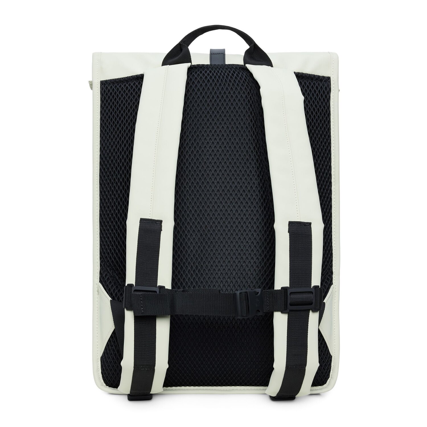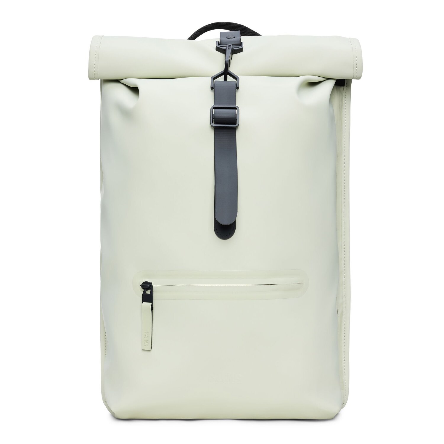 Simple design and waterproof material characterize this roll-top backpack from Rains. The spacious main compartment offers plenty of space. The ideal companion for everyday life.