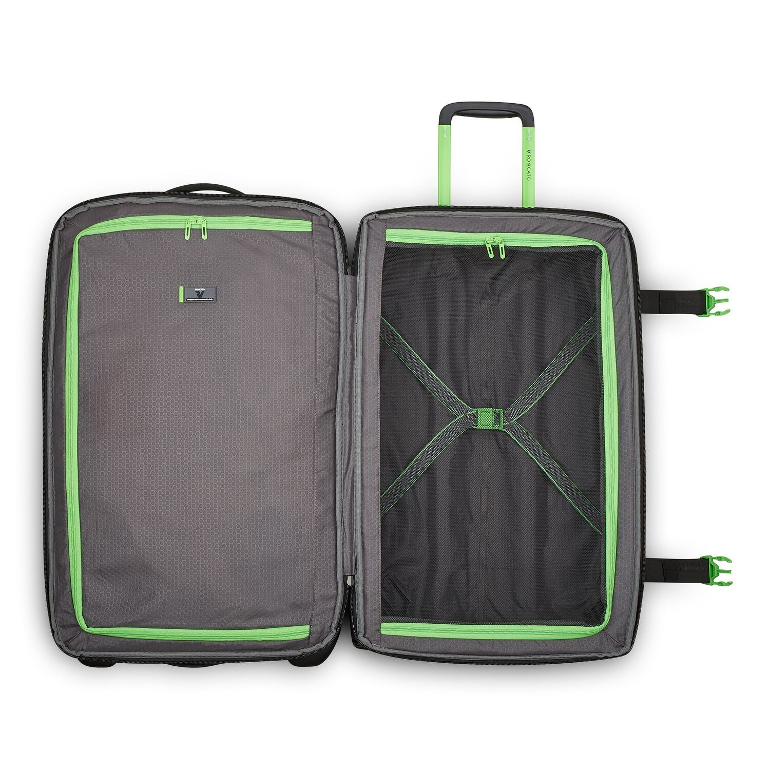 Discover the luggage for true adventurers - the Roncato Norway travel bag on two wheels. Made from structurally strong polyurethane, it proves to be a hard-wearing companion. Precisely positioned compression straps, a laundry compartment and a clear cross-body strap system ensure perfect organization. The lockable handle and external pockets provide quick access and are handy details for travelers on the move. Useful feet protect the surface, while the room divider cleverly separates inner segments. It keeps every trip perfectly organized. Get your Roncato Norway travel bag for unforgettable experiences.