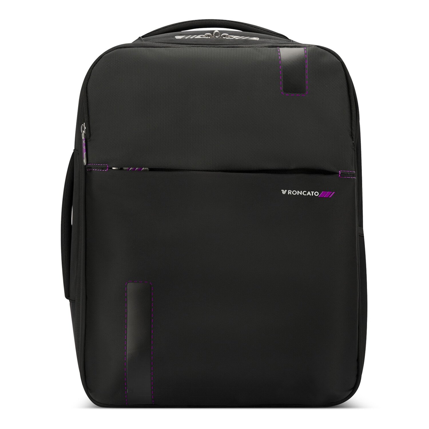 For explorers and globetrotters who value functionality and style, we present the Speed travel backpack from Roncato. Equipped with a well thought-out interior, this under-seater will keep you organized at all times. The padded main compartment protects your valuables and organizes your clothes during your adventures. On the outside, the backpack features zippered compartments, two carrying handles and a trolley strap for easy travel. The shoulder straps are concealable, making it easier to handle on the plane. Ready for any adventure - from a weekend getaway to a trip around the world.