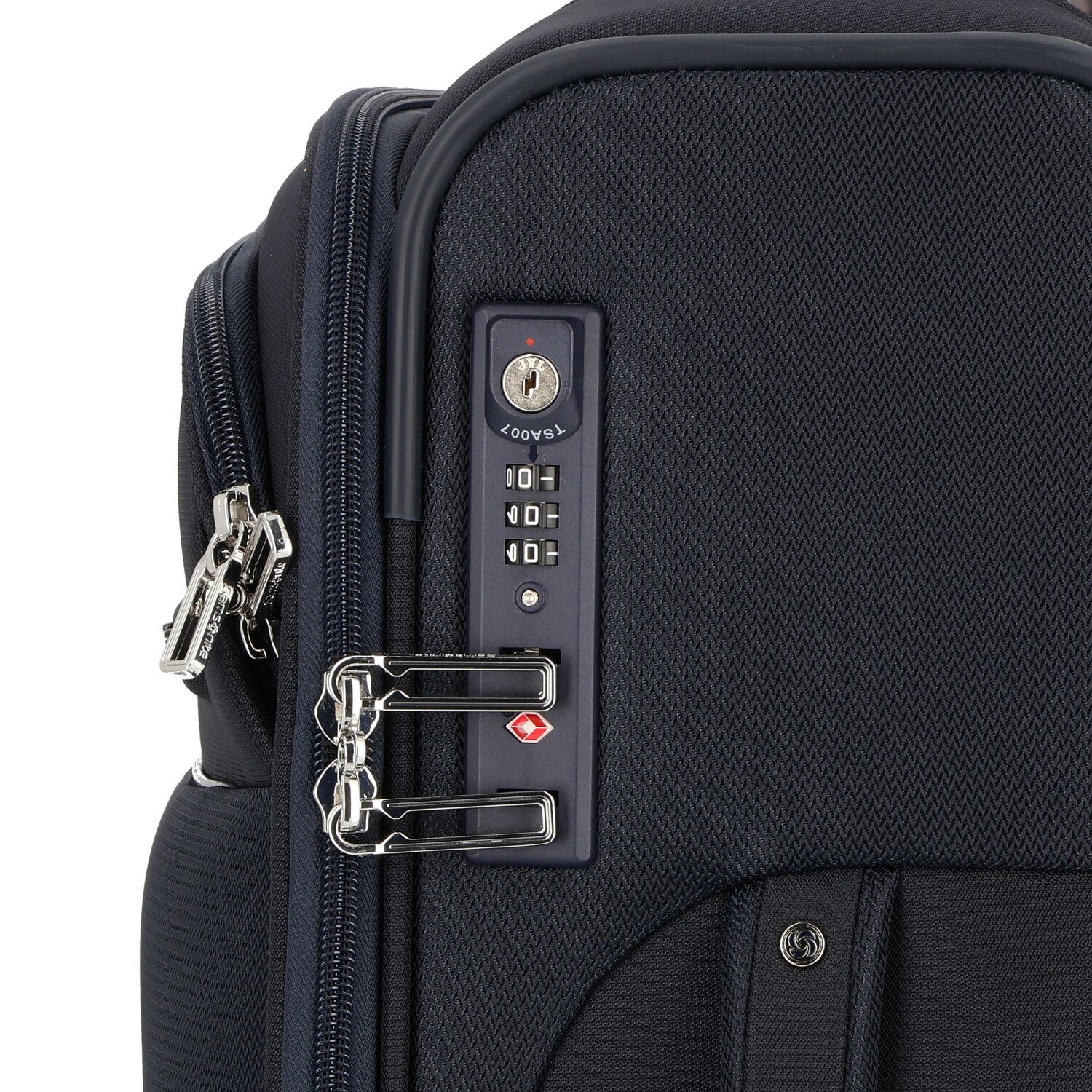 High-quality 4-wheel cabin trolley from Samsonite made of sturdy nylon with lockable telescopic handle. The trolley is characterized by elegant design and high quality workmanship. It offers a spacious main compartment, a large shirt compartment, two additional side compartments and two packing straps. So everything can be stowed clearly. The comfortable companion for the next trip.