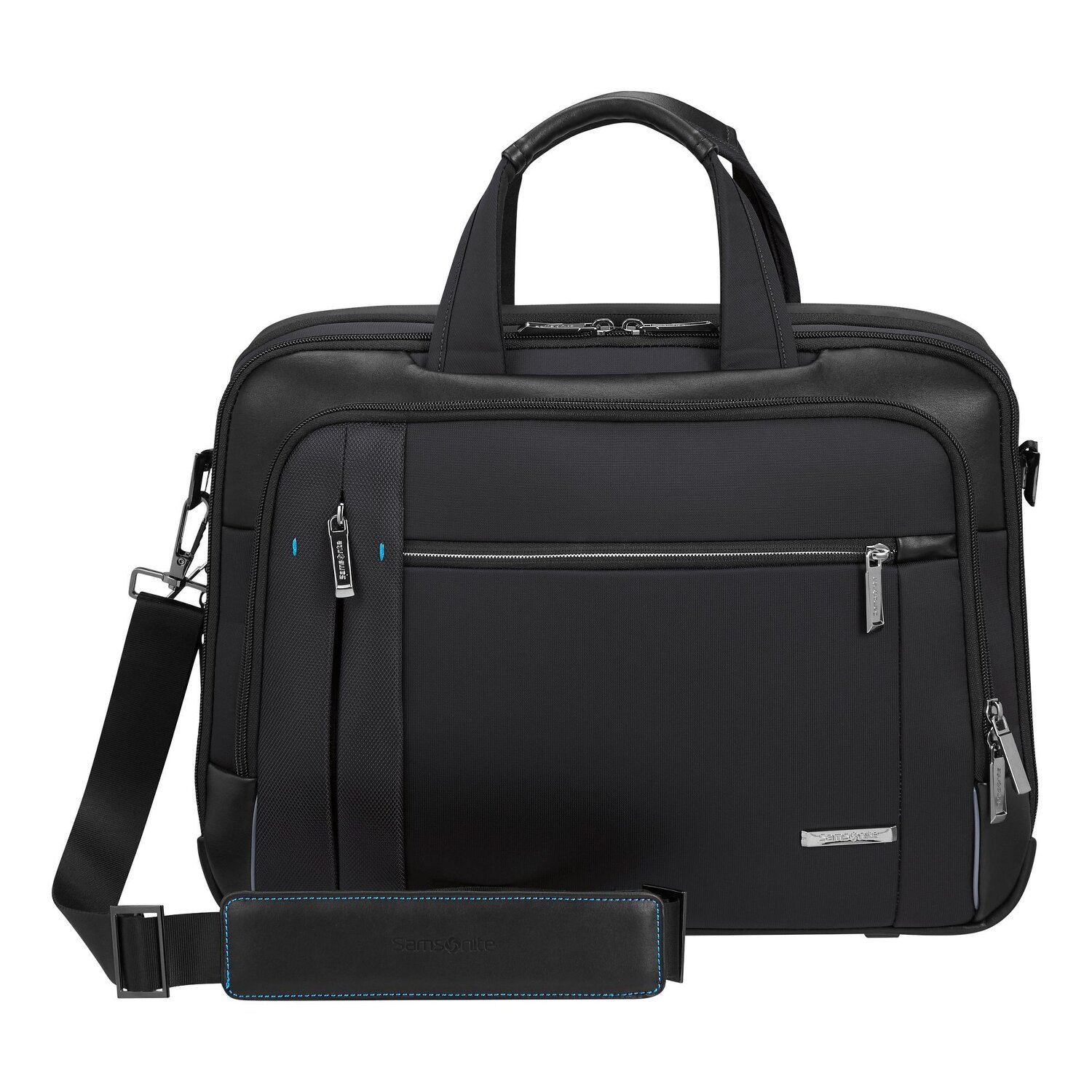The Samsonite Spectrolite 3.0 briefcase offers much more than just a stylish look. This unisex accessory sets new standards in terms of business equipment with details such as a USB power bank connection and a zipper system. In addition to extremely practical features such as pockets on the inside and outside and the option to attach the bag to a trolley, the model also offers two spacious main compartments. The integrated pen pockets are a particular highlight. The robust polyester structure, which effortlessly withstands the daily challenges of business life, underlines the high quality. The easily accessible closure and the compartment specially designed for laptops with a screen diagonal of 43 cm increase user comfort. Capable of meeting even the most demanding business requirements, the Samsonite Spectrolite 3.0 is undoubtedly an excellent investment for any professional.