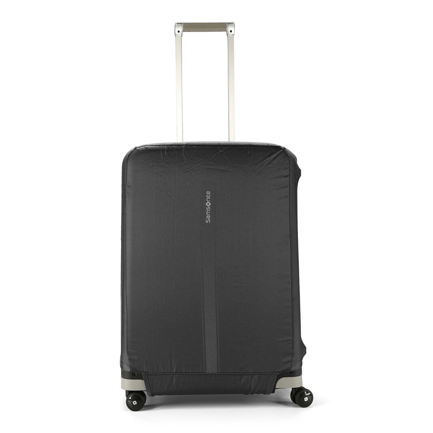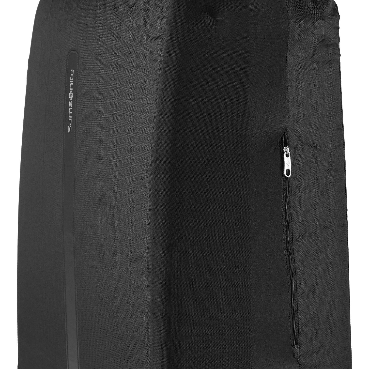 Protect your suitcase in style with the Samsonite protective cover made of durable polyester. It fits securely thanks to the Velcro fastener, while the striking Samsonite lettering adds elegance. Practical: an integrated zippered compartment and a hook for hanging. After the trip, the cover disappears compactly into its own compartment - ideal for smart frequent travelers and their next trip.