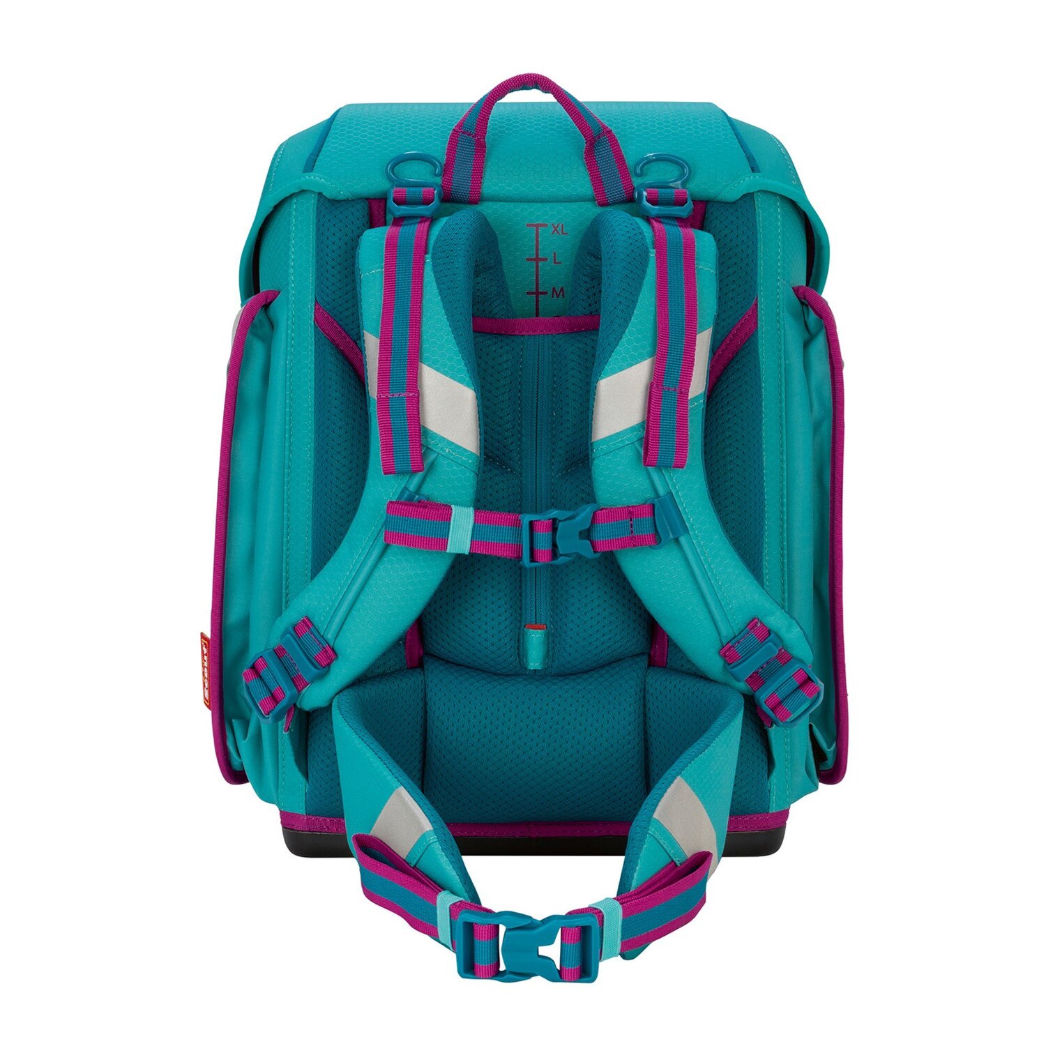 4-piece satchel set from Scout, consisting of a satchel, sports bag with wet compartment, pencil case and pencil case with 20 rubber loops for pencils, 6 rubber loops for erasers, rulers etc. and two transparent compartments. The modern backpack shape, sturdy frame construction with robust side elements, the smooth-running one-hand closure, stability and tilt resistance thanks to the large footprint, plus a protective strip against the ingress of water - these are just some of the many great features of the new Scout school bag. Reflective materials offer a safe and optimal solution when it comes to your child's visibility.