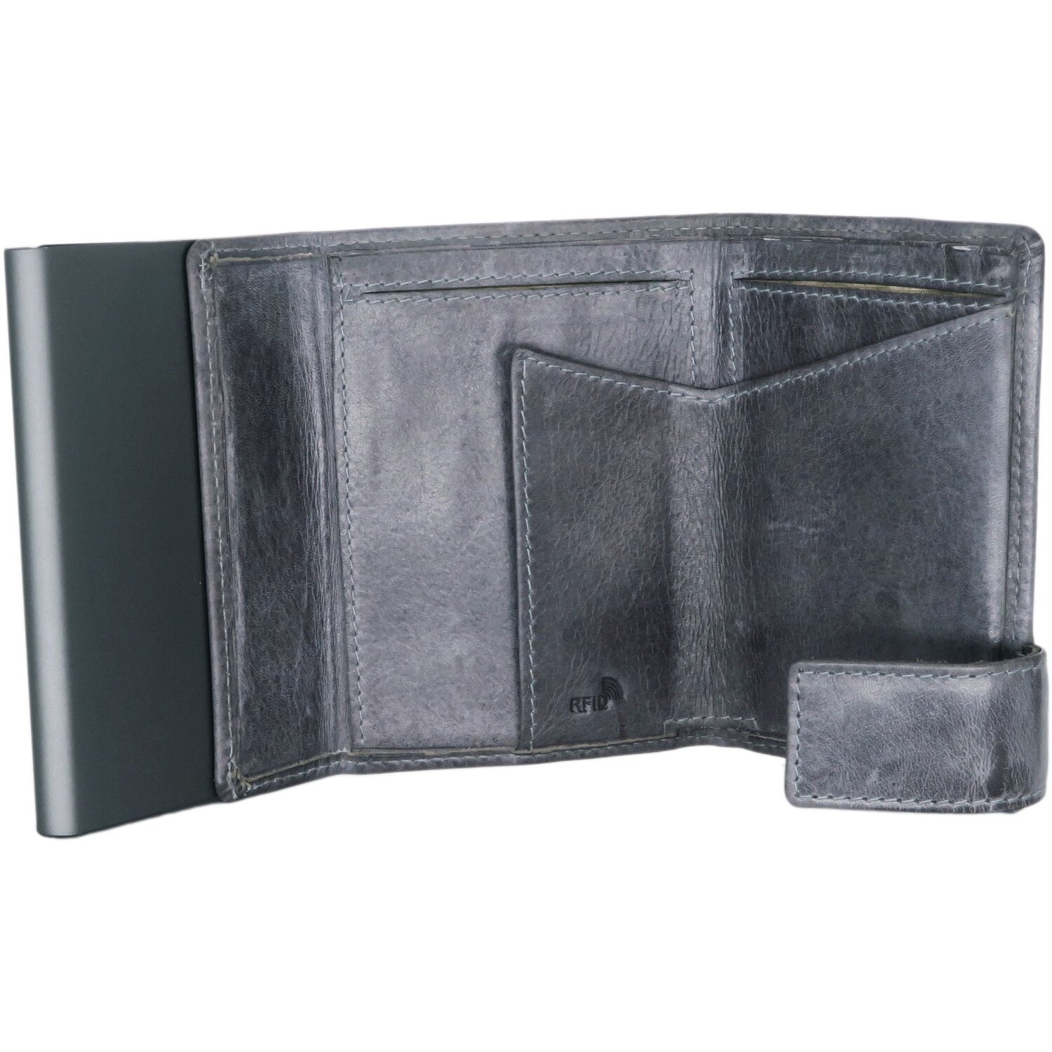 The latest generation credit card case with RFID protection combines craftsmanship tradition with the innovative Easy-Slide technology. The aluminum container holds up to 8 cards. This guarantees protection against damage and an optimal overview. The noble case made of finest leather, which is available in many different designs, provides individual elegance and has additional compartments for cards as well as a bill compartment inside.