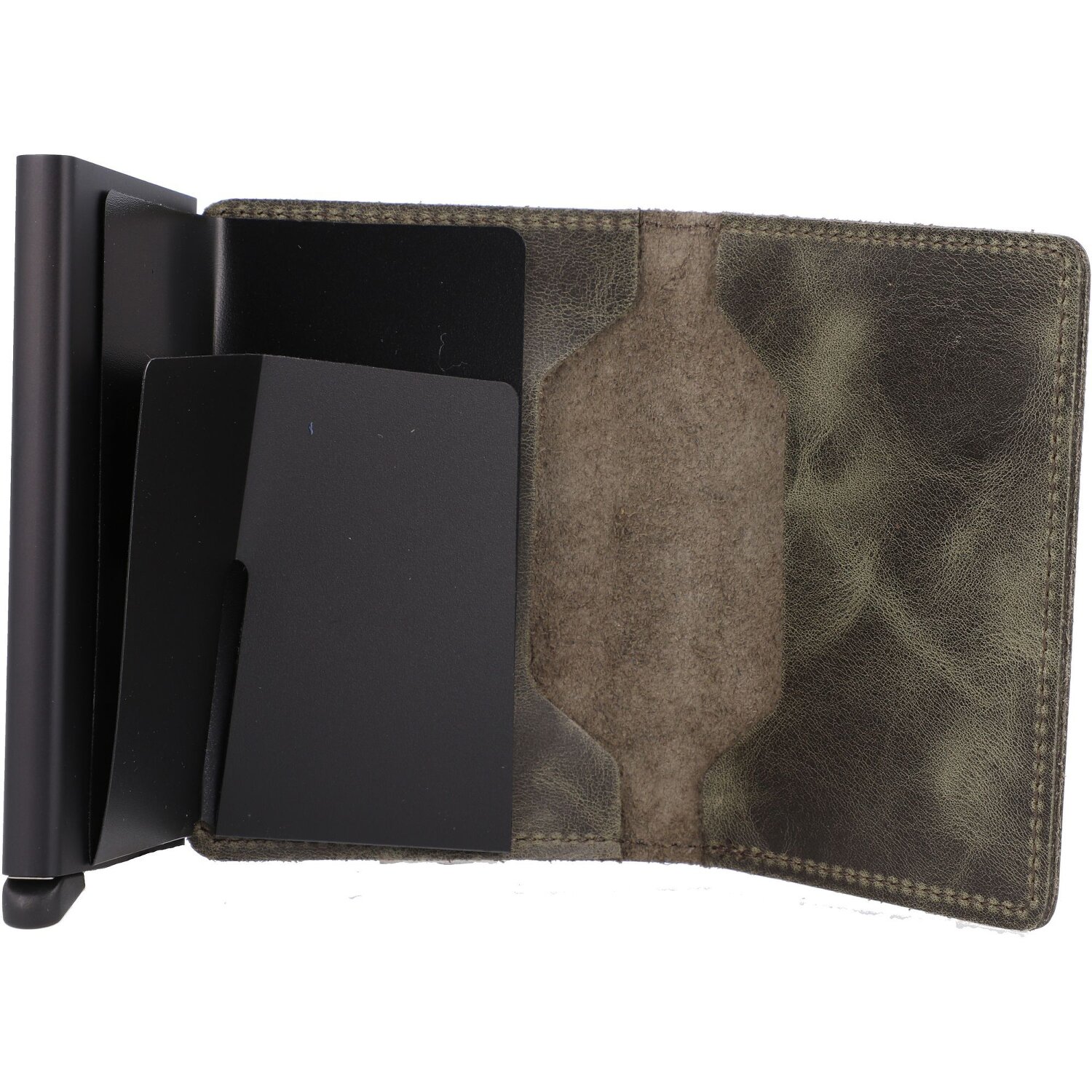 The latest generation credit card case combines traditional craftsmanship and innovative, patented technology: The credit card compartment made of sturdy aluminum can hold up to 6 cards, which slide out in orderly sequence at the touch of a button. This guarantees protection against damage and an optimal overview. In addition, the compartment offers RFID protection against data theft. The noble case made of finest leather, which is available in many different designs, provides individual elegance and has additional compartments for cards as well as a fold-out slip pocket for banknotes.