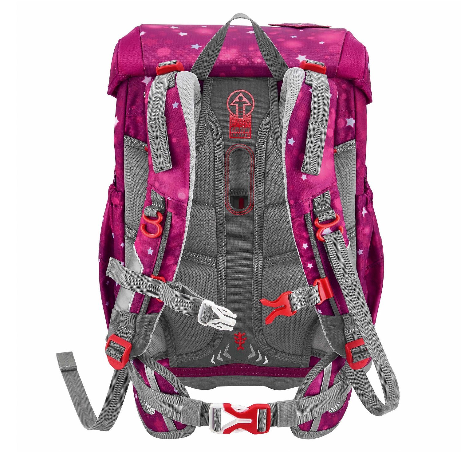 The Cloud impresses with its particularly lightweight material and the height-adjustable carrying system that grows with your child. The ergonomically designed back section, the back padding as well as the hip fins, the chest strap and the position adjustment straps ensure maximum carrying comfort. Magic Mags can be attached to customize the bag to your child's personal taste. The spacious main compartment offers enough space for all school utensils, while the two side pockets are expandable and create additional storage space. The set includes: Satchel, fully stocked pencil case with branded pencils, pencil case, gym bag and a 3-piece Magic Mags set. Satchel dimensions: 28 cm x 20 cm x 37.5 cm / weight: approx. 990 g / volume: approx. 19 l.