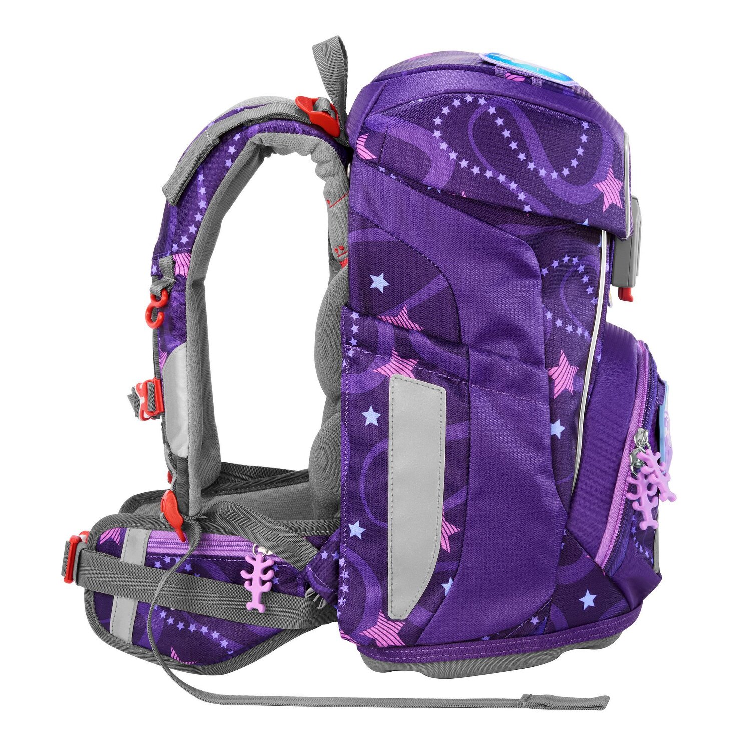 The Giant school bag impresses with its particularly light, water-repellent material made from PET bottles, large capacity and height-adjustable carrying system that can be adapted to your growing child. The ergonomic back section, back padding, hip fin, height-adjustable and removable chest strap and position-adjustable straps ensure an optimal carrying experience. Magic Mags can be attached to suit your child's individual taste. In the spacious main compartment, which is closed with a practical Fidlock magnetic fastener, there is plenty of space for everything that is needed in class, and the two side pockets can also expand outwards to provide sufficient storage space inside. The pencil case can be stored in the satchel lid to save space. Set consisting of: Satchel, pencil case (fully equipped with branded pencils), pencil case, sports bag and 3-piece Magic Mags set. Satchel outer dimensions: 28 cm x 21 cm x 37.5 cm / weight: approx. 990 g / volume: approx. 19 l