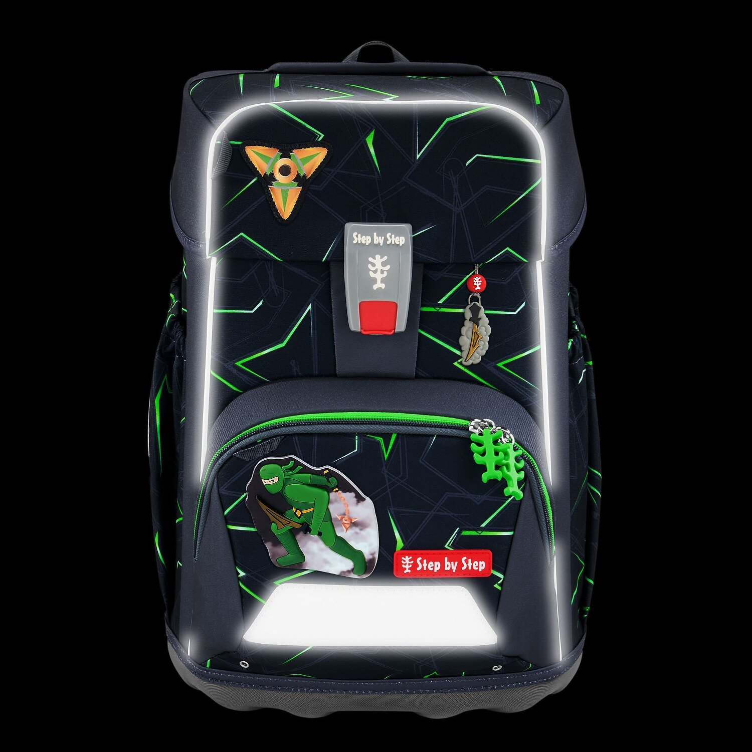 The Giant school bag impresses with its particularly light, water-repellent material made from PET bottles, large capacity and height-adjustable carrying system that can be adapted to your growing child. The ergonomic back section, back padding, hip fin, height-adjustable and removable chest strap and position-adjustable straps ensure an optimal carrying experience. Magic Mags can be attached to suit your child's individual taste. In the spacious main compartment, which is closed with a practical Fidlock magnetic fastener, there is plenty of space for everything that is needed in class, and the two side pockets can also expand outwards to provide sufficient storage space inside. The pencil case can be stored in the satchel lid to save space. Set consisting of: Satchel, pencil case (fully equipped with branded pencils), pencil case, sports bag and 3-piece Magic Mags set. Satchel outer dimensions: 28 cm x 21 cm x 44 cm / weight: approx. 990 g / volume: approx. 23 l