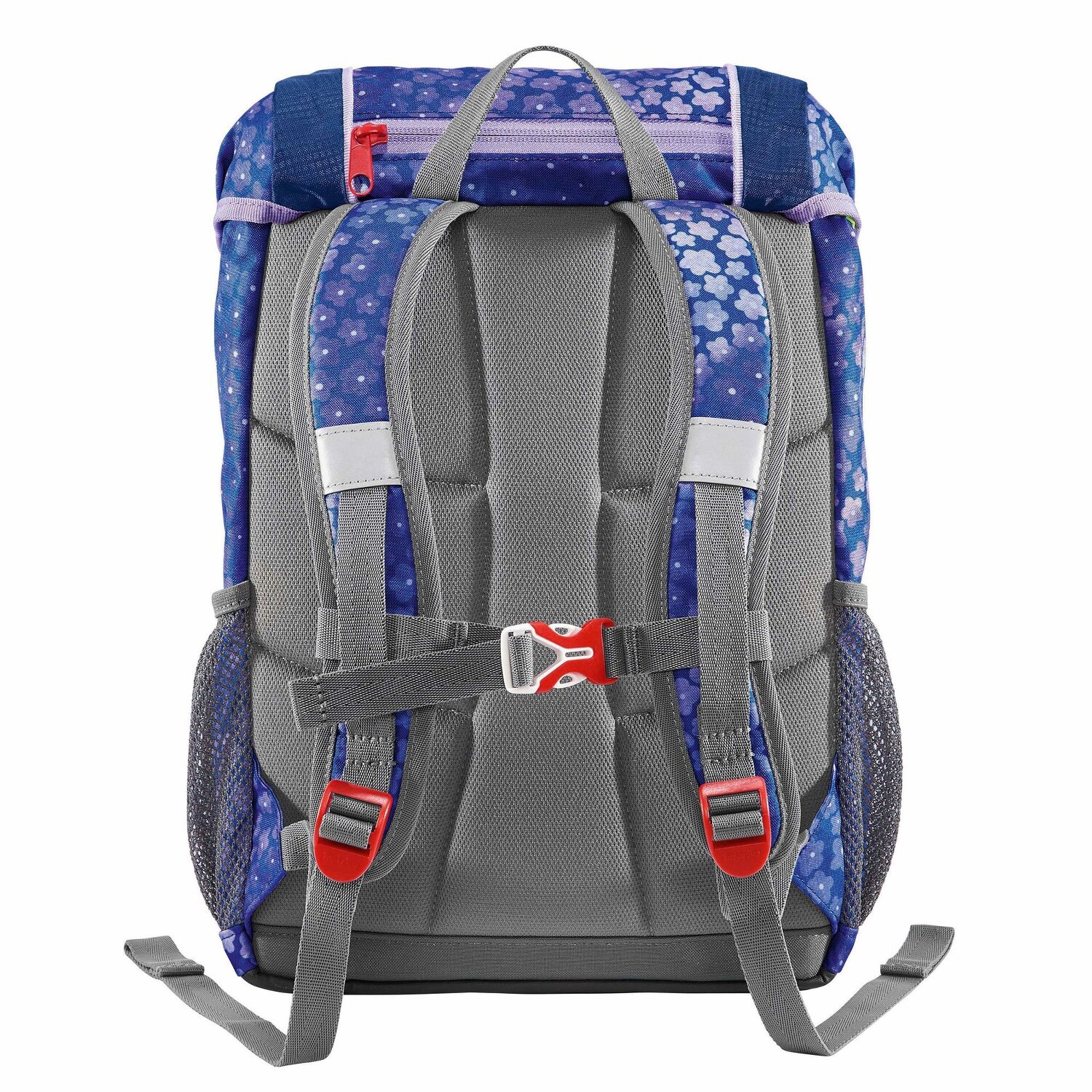Practical children's backpack for kindergarten or pre-school. Ergonomically shaped shoulder straps and back construction as well as a height-adjustable chest strap ensure a high level of carrying comfort. The backpack is very easy to open using the snap fastener. The practical main compartment for A4 documents offers additional space for sports equipment, coloring books and more. Further inside pockets and side pockets provide additional storage space. A further highlight is the water-repellent and easy-to-clean design and reflectors. The set also includes a seat cushion and Magic Mags to personalize the backpack.