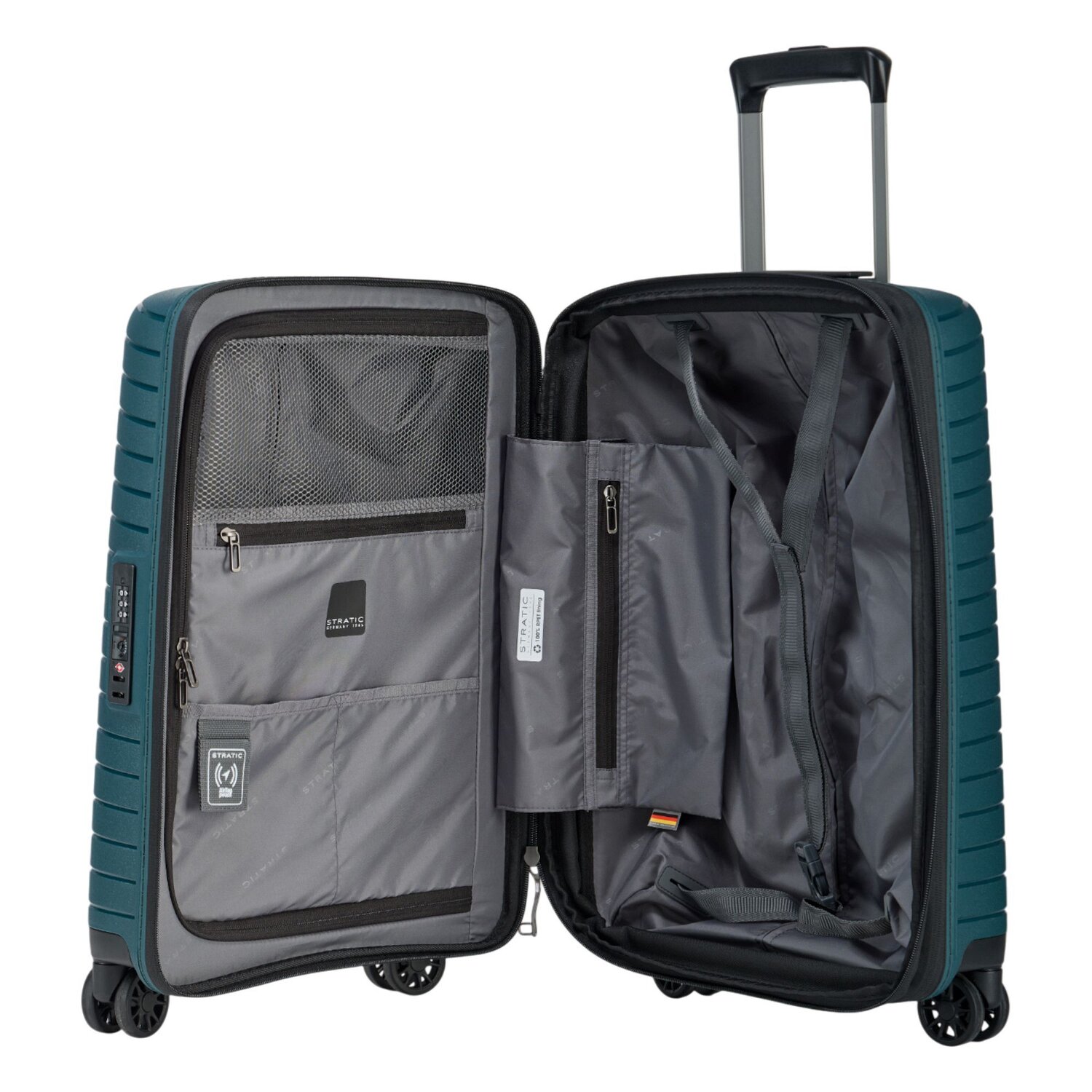 Freedom in compact form: The sturdy "Novium" cabin trolley from Stratic shines with its sparkling stability and inspires your travel heart. Its striking features? An intricately crafted expansion pleat, carefully placed pockets inside and a sophisticated laundry compartment, secured by a meticulously lockable handle and a trustworthy TSA lock. Polypropylene, the battle-tested star among materials, ensures strong performance and long-lasting durability. With this trolley, many a travel adventure can be mastered just as easily as hectic business appointments. Welcome to the fast lane of travel! Because this Stratic suitcase is more than just a piece of luggage - it's a statement. Thanks to the expansion fold, the suitcase can be expanded to a volume of 42 liters.