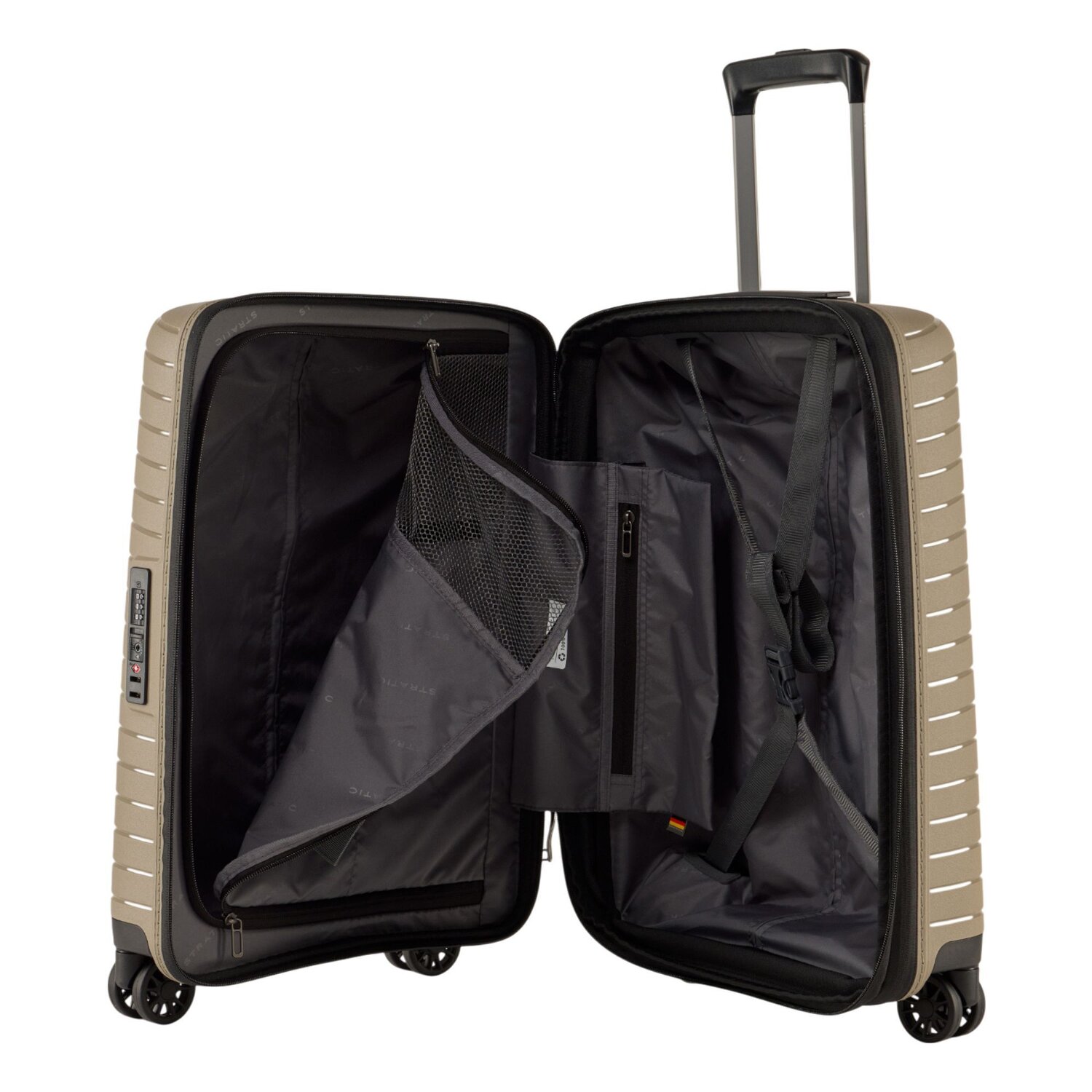 - Features: Zipper compartment, removable bag, Lockable handle, Laundry compartment, Inside pocket(s), Inner packing straps, Expandable