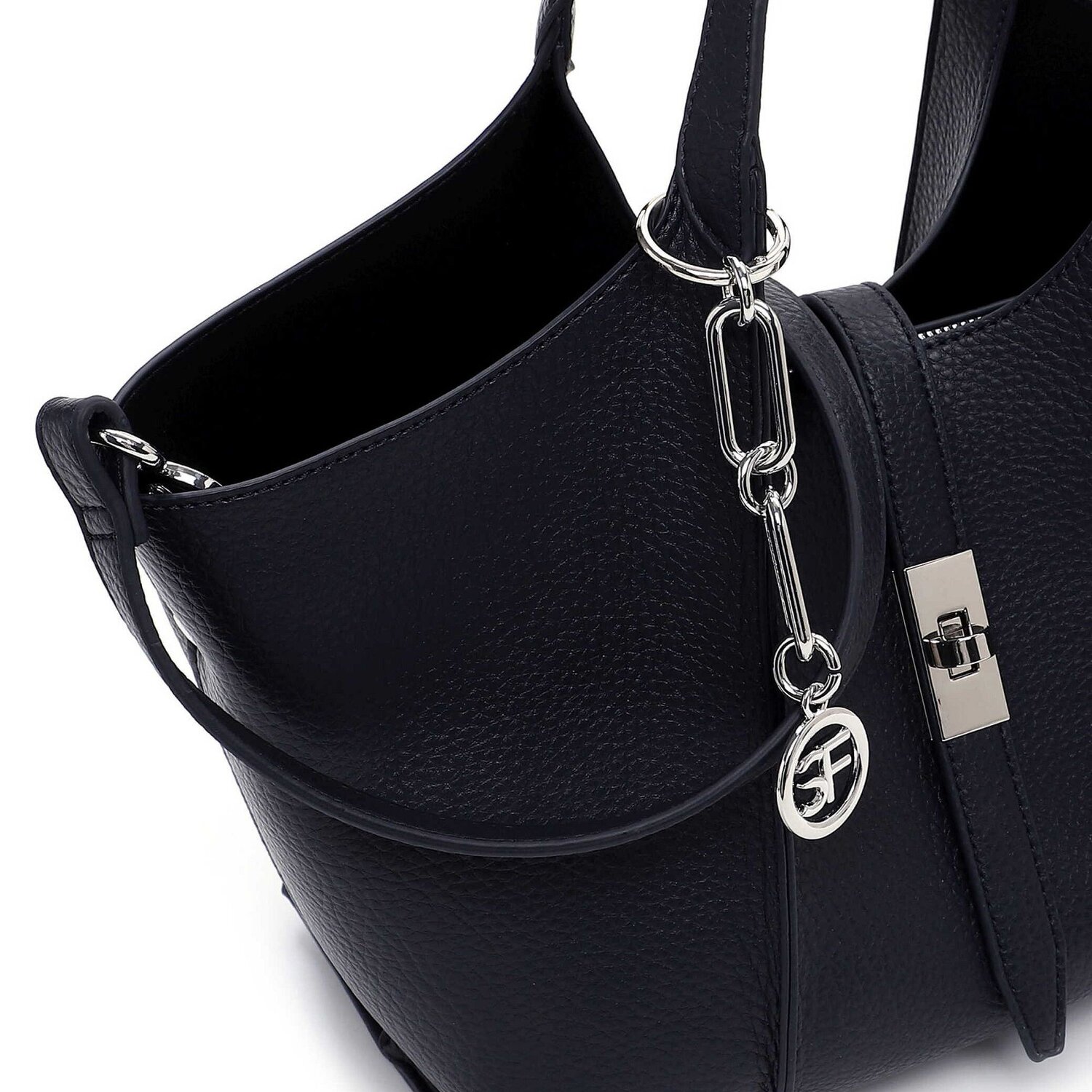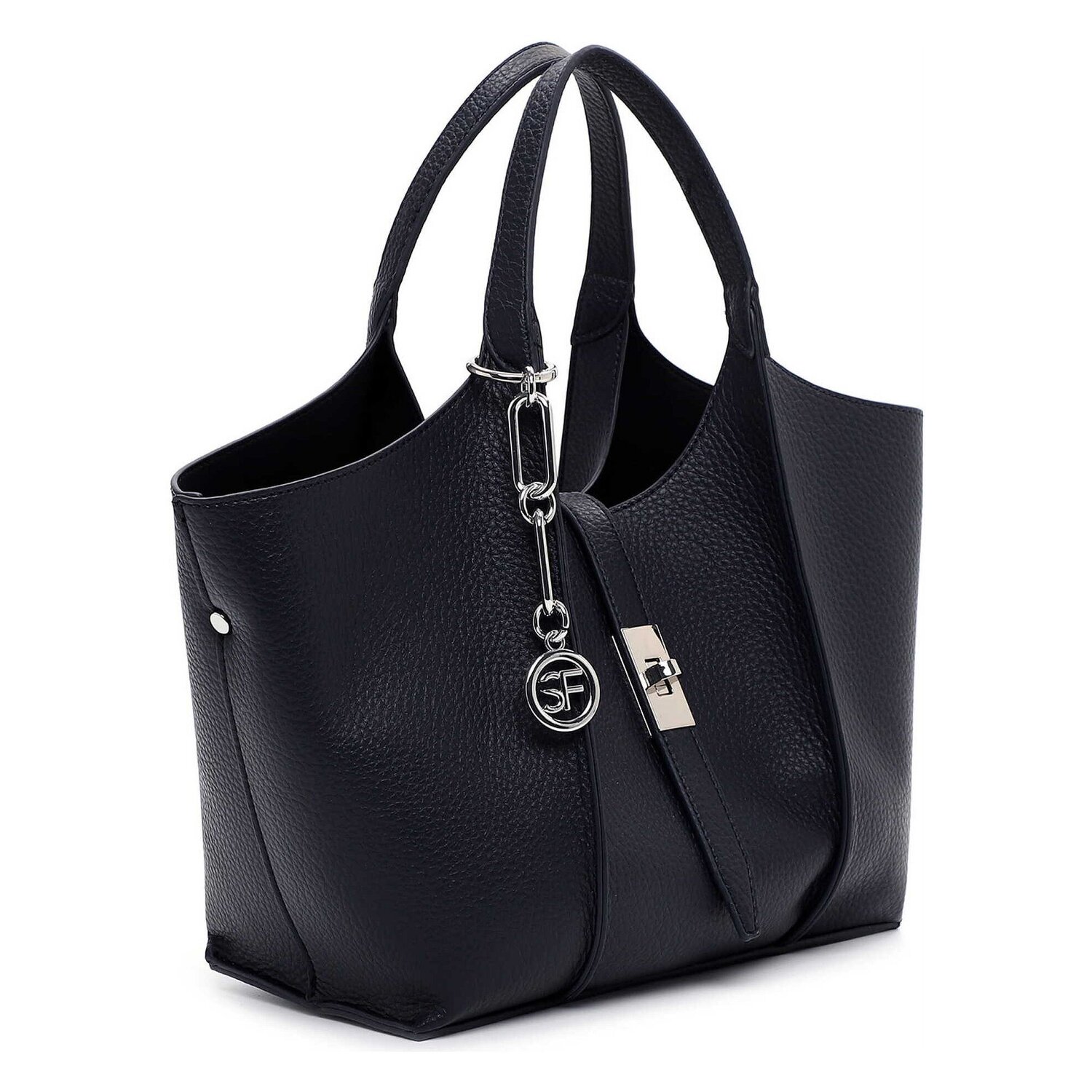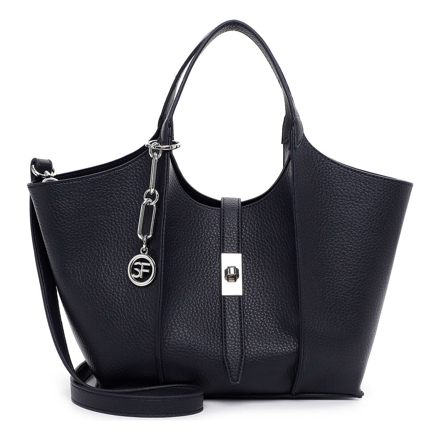 The Suri Frey shopper bag from the SFY Daggy series exudes style and functionality. A handbag specially designed for women is characterized by its inner features. A zippered compartment and inner pockets keep things organized, while a removable pocket offers flexibility. The practical twist lock keeps your valuables safe. With a polyurethane outer shell, the bag boasts a sleek yet robust design. Carry it comfortably by the handle or use the adjustable shoulder strap for versatile comfort. This stylish accessory is the perfect finishing touch to any outfit, making it an absolute must-have in any wardrobe.