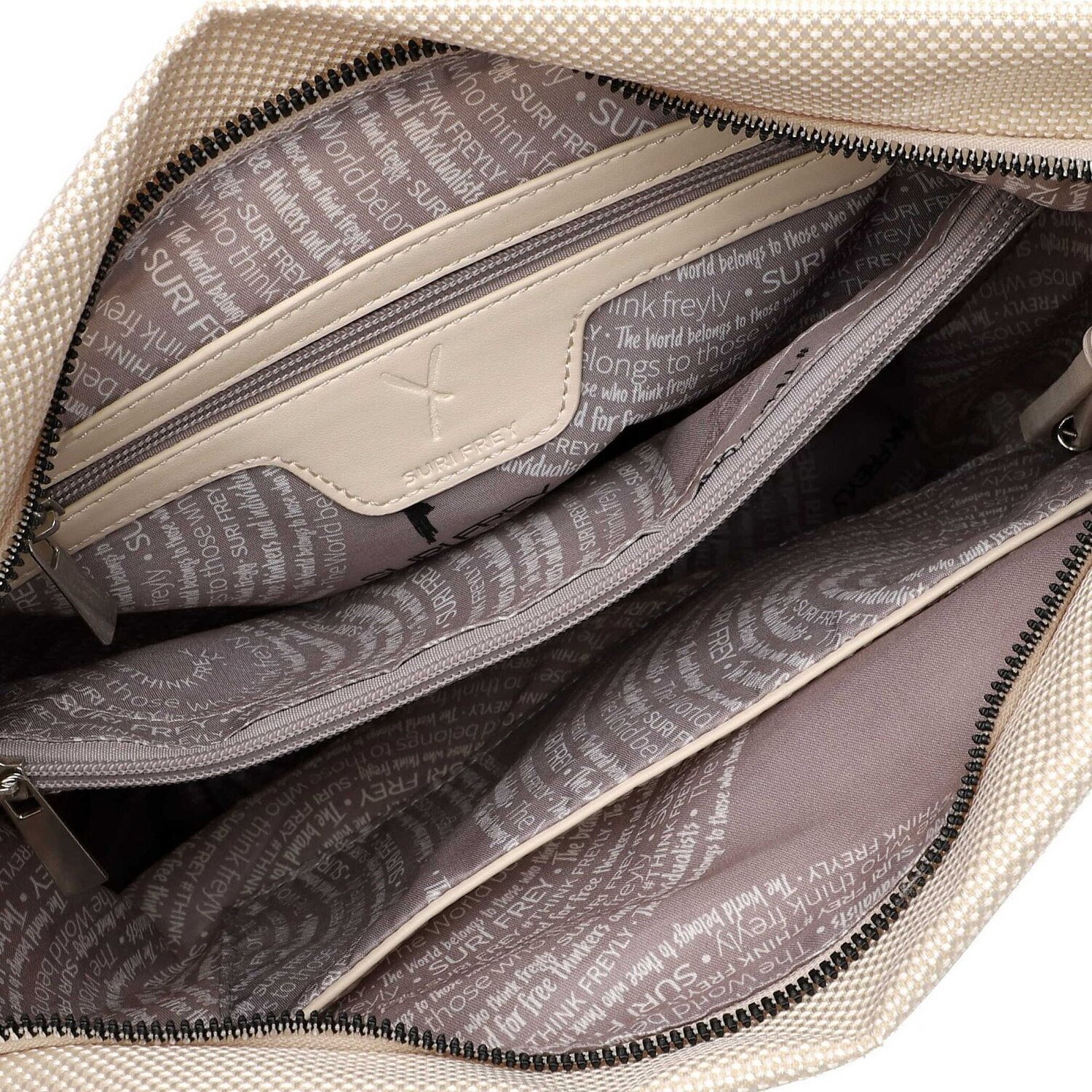 Beautiful shoulder bag from Suri Frey made of nylon with removable, adjustable shoulder strap. It has a clear main compartment, two zipper compartments, two slip pockets and offers optimal conditions to store the most important items.