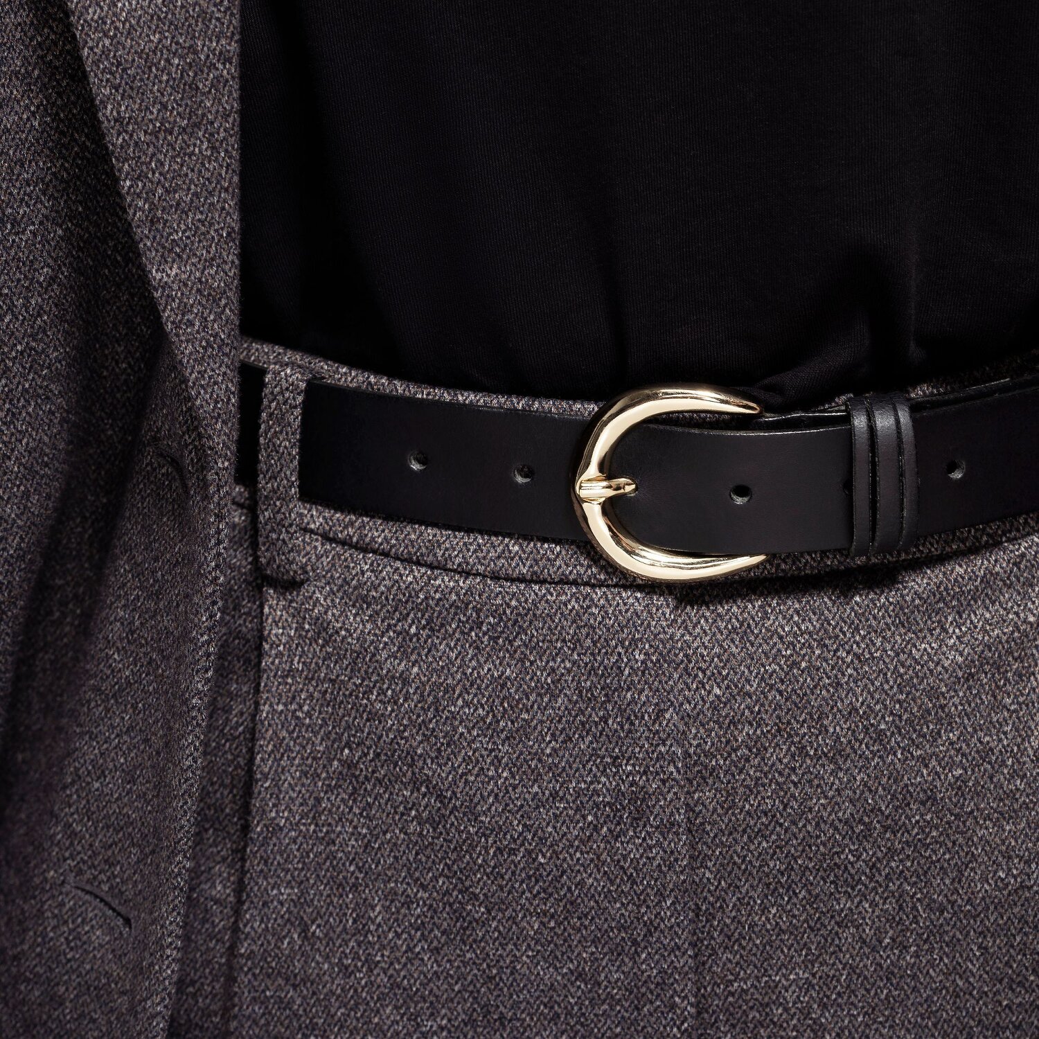 - Belt closure: Frame buckle with prong