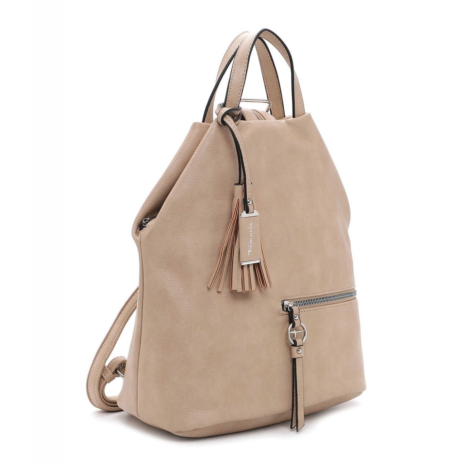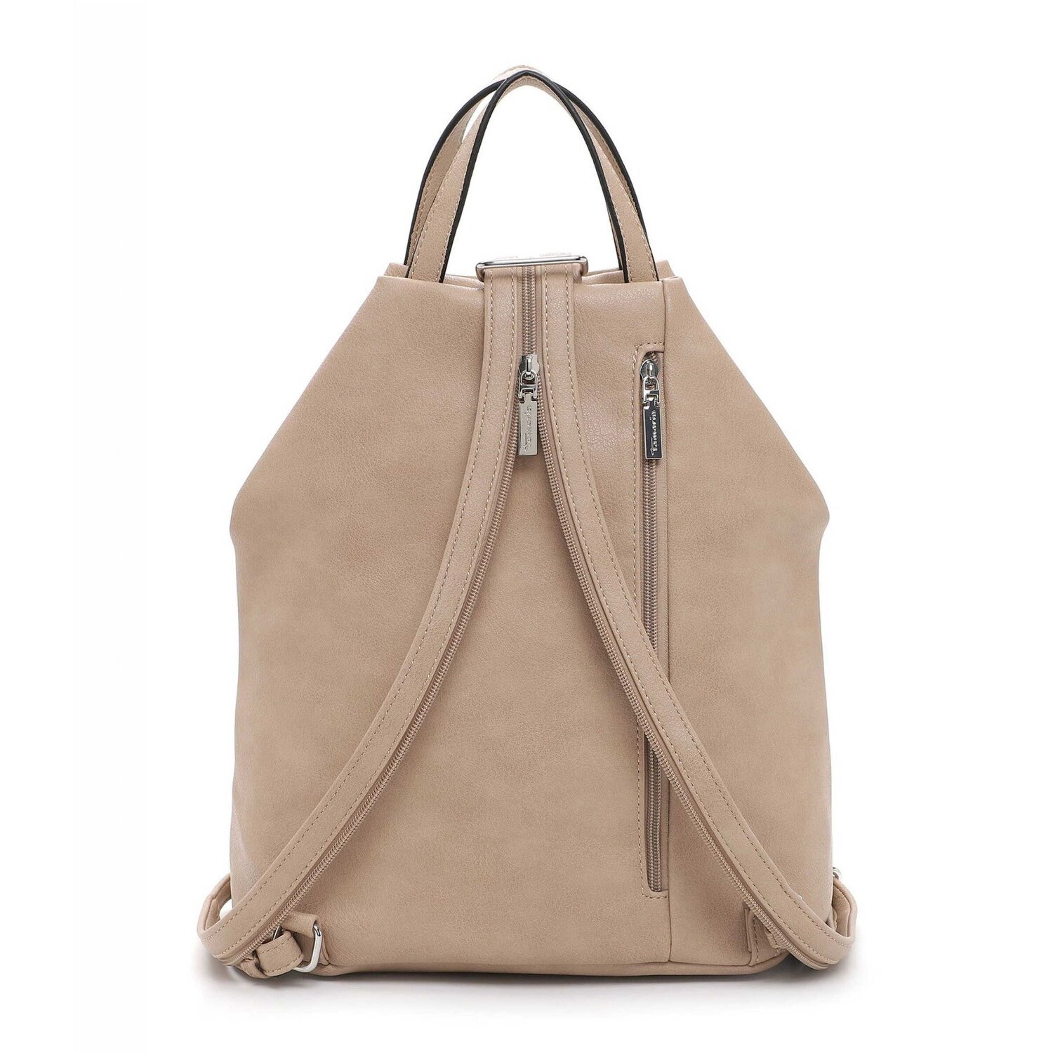 Trendy city backpack from the Tamaris brand made of faux leather. The backpack offers plenty of space for everything you need for a trip into the city. It also has a slip pocket and a zipped compartment on the inside and two zipped compartments on the outside. The perfect companion for a city stroll.