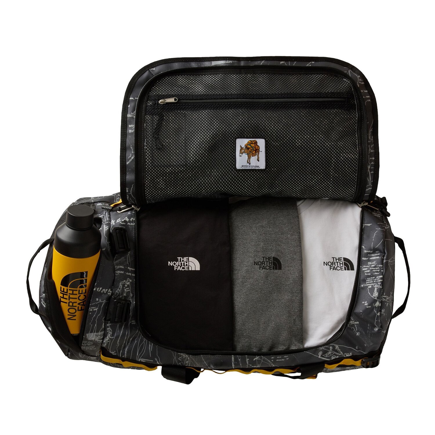 Functional travel bag in proven quality from The North Face made of water-repellent and extremely robust material. Thanks to the removable and adjustable ergonomic shoulder straps, it offers versatile carrying options. The backpack has plenty of storage space and separation options. In addition, the backpack is still equipped with a small zipper pocket on the front side, which is perfect for wallet, keys or other small items. For a better overview, the bag can be opened completely. The perfect companion for the next adventure.
