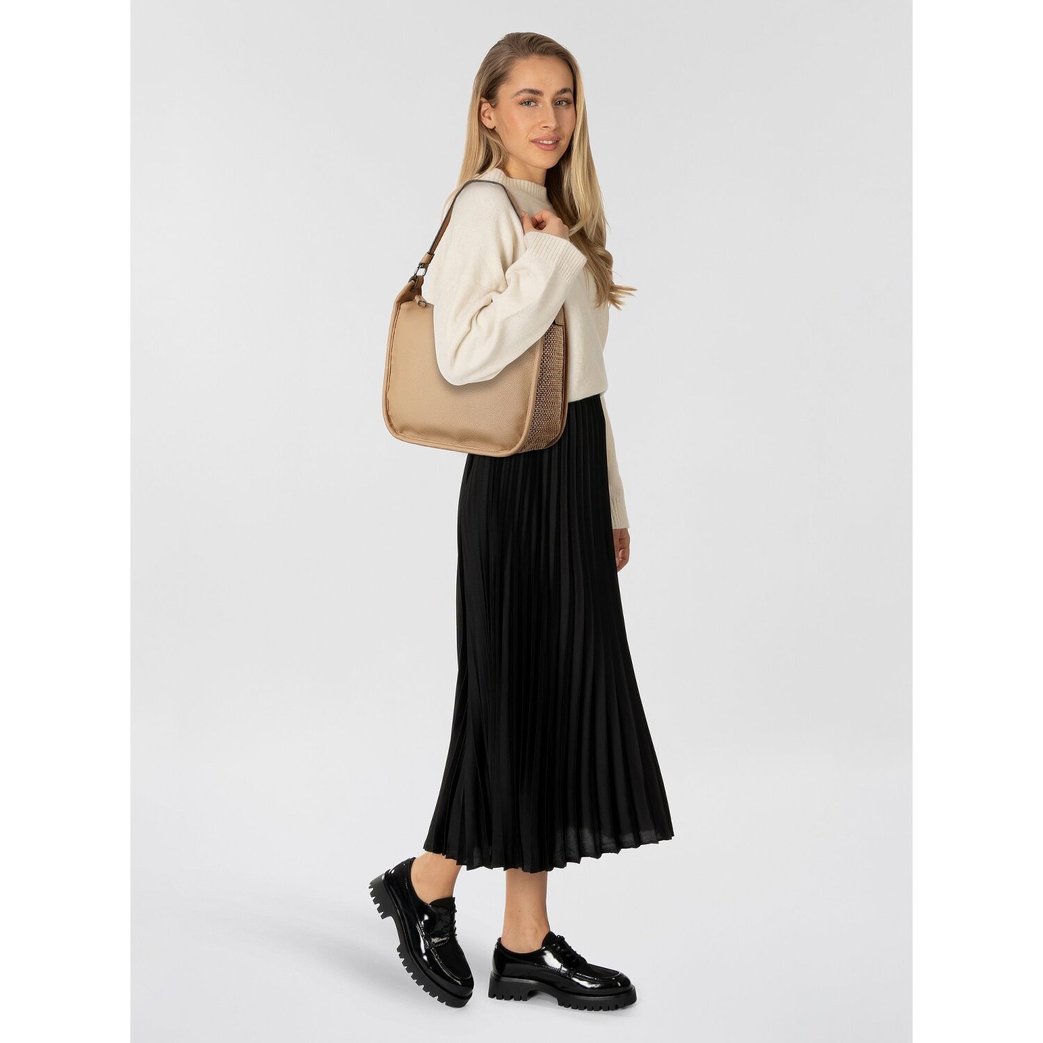The Evann shoulder bag from Tom Tailor combines style and functionality. The elegant model made from durable polyurethane is particularly robust and boasts a fine aesthetic. Equipped with a sophisticated zipper, it offers practical pockets on the inside as well as an easily accessible compartment on the outside to safely store small items. The charming highlight: a detachable shoulder strap with adjustable length allows flexible carrying options. The medium-length shape of the main strap also adapts perfectly to any situation. Get your personal Evann and enhance your fashion statement.