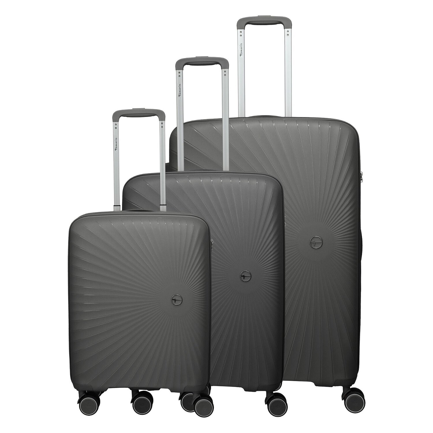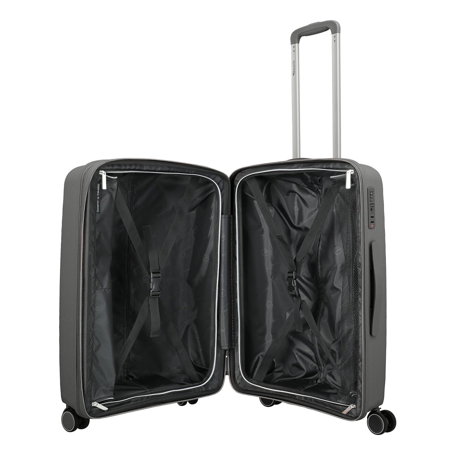 This three-piece suitcase set from Travelite made of durable polypropylene is aimed at travelers who value style, structure and reliability. Whether it's a short trip, business trip or long-distance travel - with three perfectly coordinated sizes, you can travel flexibly. Well thought-out interior fittings with laundry compartments, cross packing straps and practical dividers keep things tidy, while lockable handles and sturdy carrying handles guarantee comfortable handling. The medium suitcase offers additional storage space when needed thanks to an expansion pleat. The large and medium suitcases are equipped with TSA locks for security when traveling, while the cabin trolley has an integrated combination lock. Each suitcase is reliably closed with a zipper. The set is visually appealing with an elegant Tamaris logo on the front and discreet lettering on the zippers. A stylish solution for anyone who wants to travel in a relaxed and organized way.