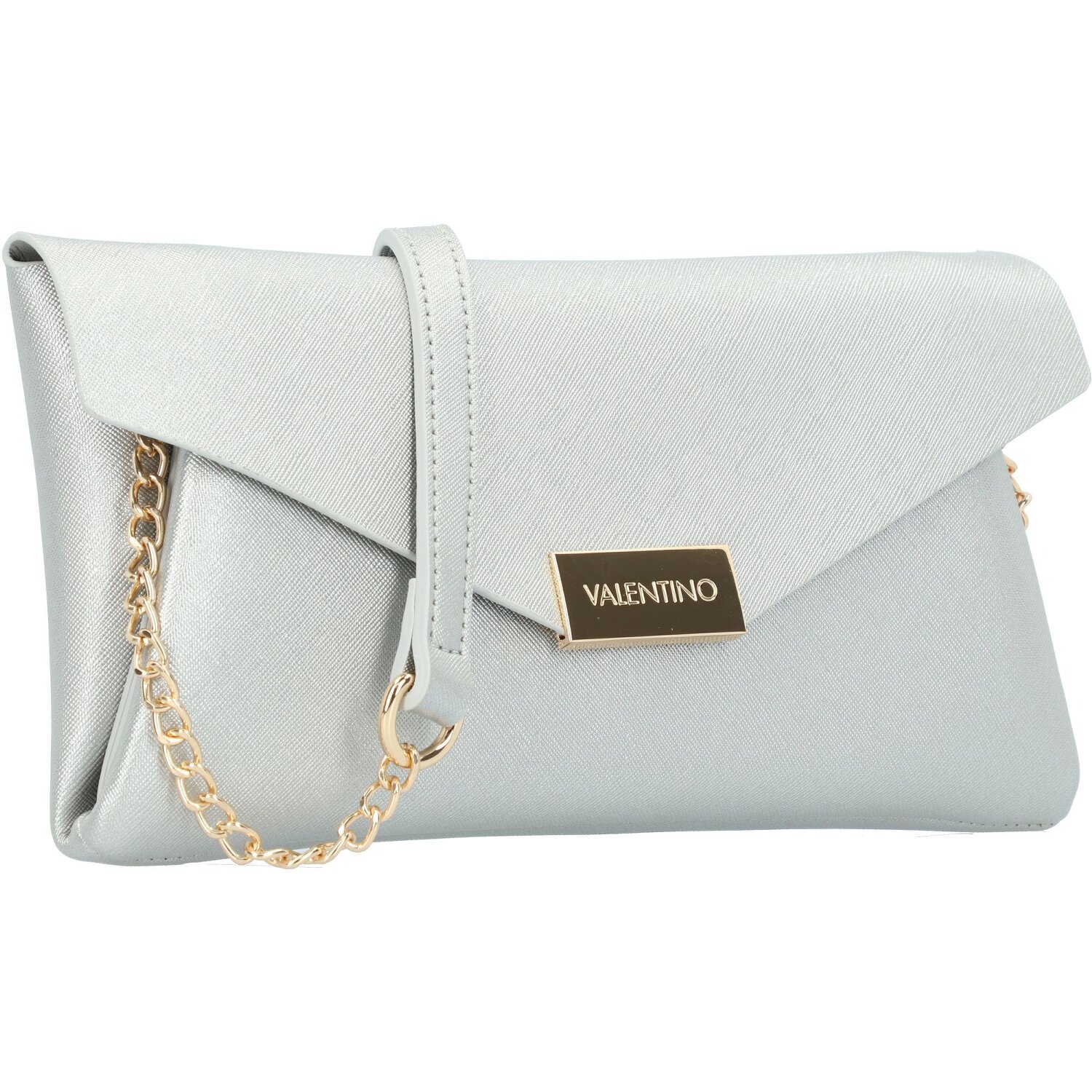 Beautiful clutch bag made of soft faux leather with fashionable necklace. This bag in classic envelope shape convinces with the stylish design and the highest quality workmanship. A noble shiny closure with Valentino logo provides an exciting accent. The bag will be your loyal companion for a festive evening.