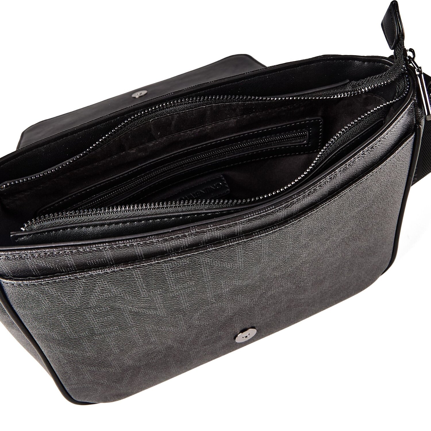 Presented by Valentino: "King RE", a fashionable men's shoulder bag with a powerful combination of style and functionality. Equipped with a zippered compartment and inside and outside pockets, it offers plenty of space. Its core material, polyurethane, gives it an elegant touch while still ensuring structural robustness. The easy-access magnetic closure ensures quick opening and closing of the bag, the perfect companion for the busy urbanite. A special detail is the adjustable and long shoulder strap. This offers unlimited flexibility when carrying. Do not hesitate. Mix style and functionality with the Valentino "King RE".