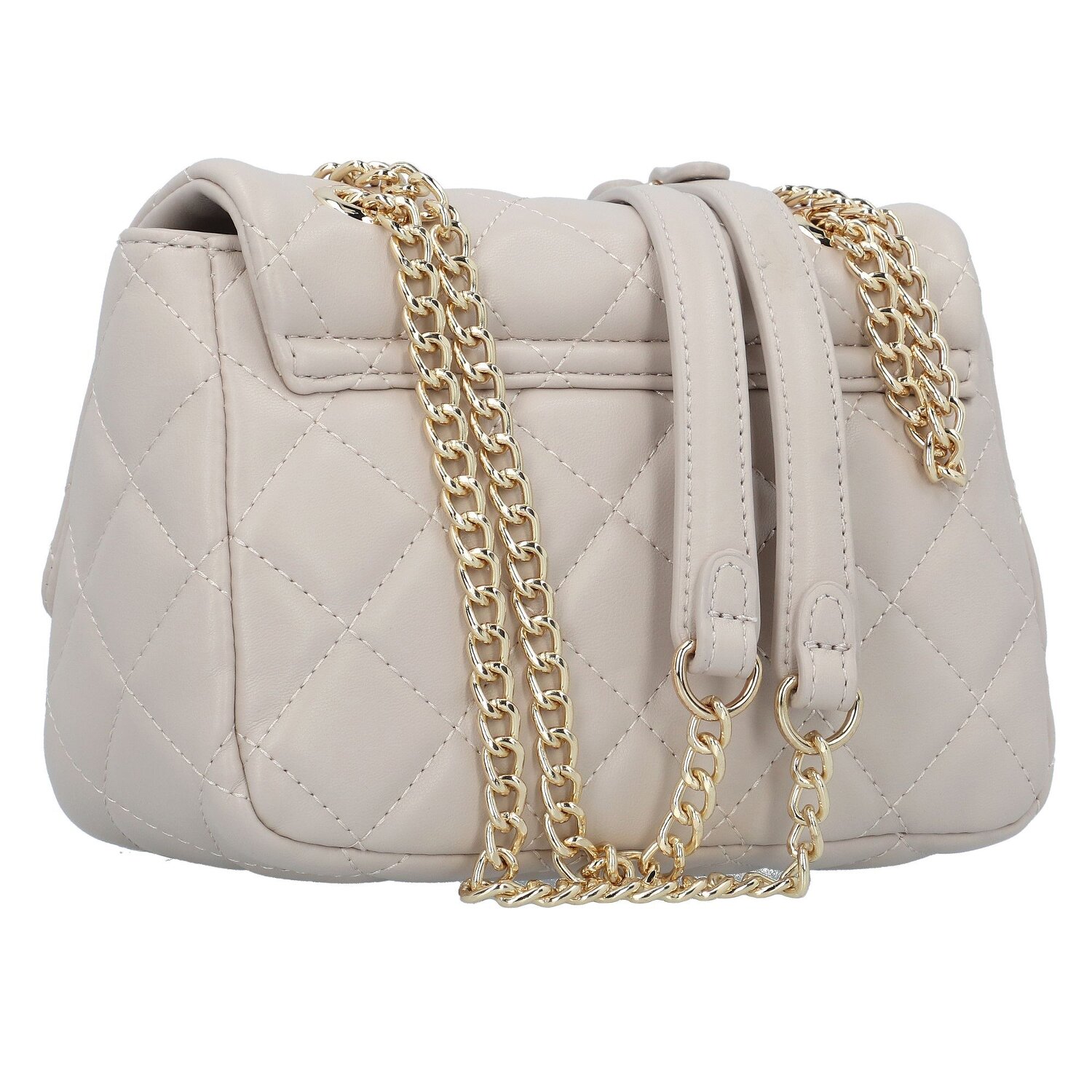 The Ocarina series from Valentino is characterized by its elegant design. The spacious main compartment offers enough storage space for your valuables and the additional compartments provide even more storage space and a better overview. The two connected metal chains with shoulder pads made of imitation leather can be made into a shoulder strap by making one of the two chains disappear into the lid of the bag. The ideal companion for many occasions.