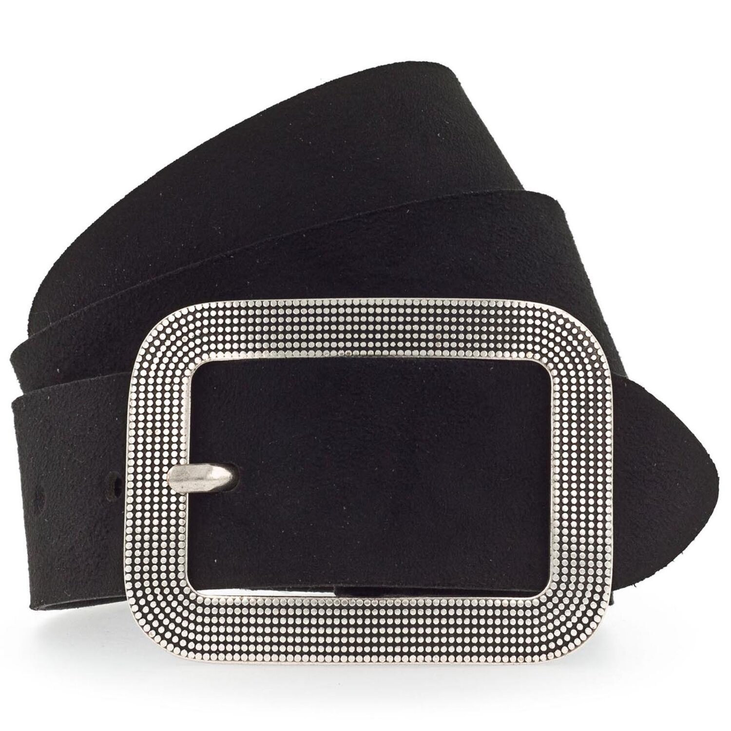 Fashionably elegant velour belt for women with airbrushed edges can be combined with many items of clothing thanks to its elegant design and ensures a chic appearance.