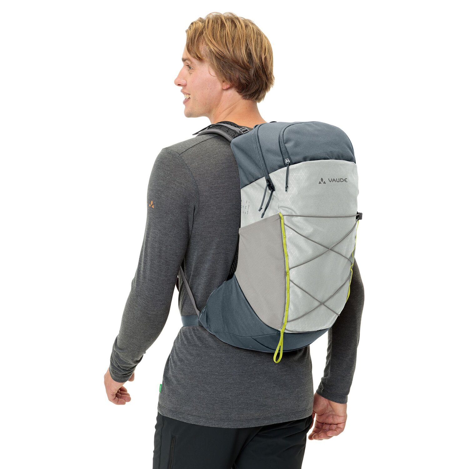 Compact hiking backpack from Vaude with an innovative carrying system and optimum ventilation. Lightweight and practical features characterize this backpack. A pole holder, a flashing light holder and an outlet for a hydration system are just three of the many highlights of this backpack.