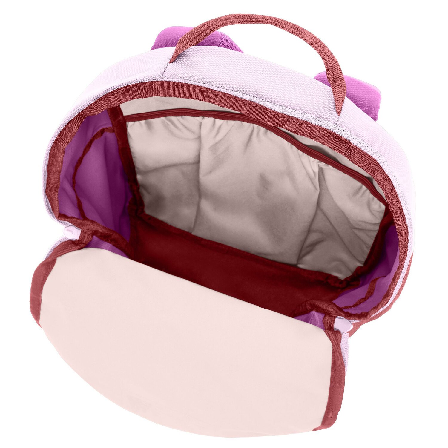 Children's backpack from Vaude in a beautiful, clean design with generous main compartment. A zippered pocket on the front has space for snacks and smaller utensils. In addition, on the outside still two side bottle nets and attachment loops for a bike helmet. Also provides a good carrying comfort for the little ones and in the main compartment is enough space for Vesper, change of clothes and other things.