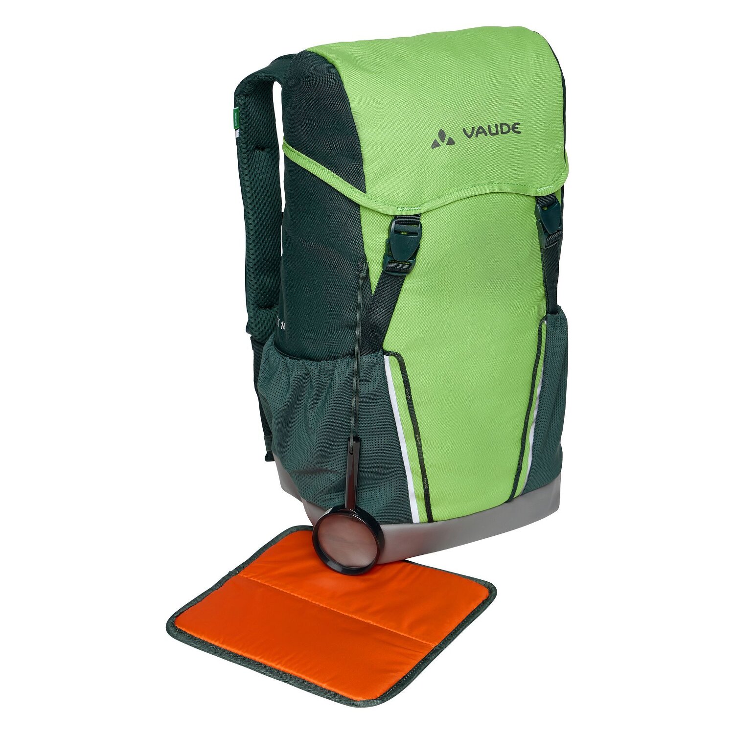 Vaude backpack for children with rain cover and removable seat mat. The padded back, a seat mat and various mesh and zipper compartments bring comfort and optimal storage space. The waterproof bottom material and the rain cover protect the backpack even in bad weather. A super backpack for the little ones to many occasions.