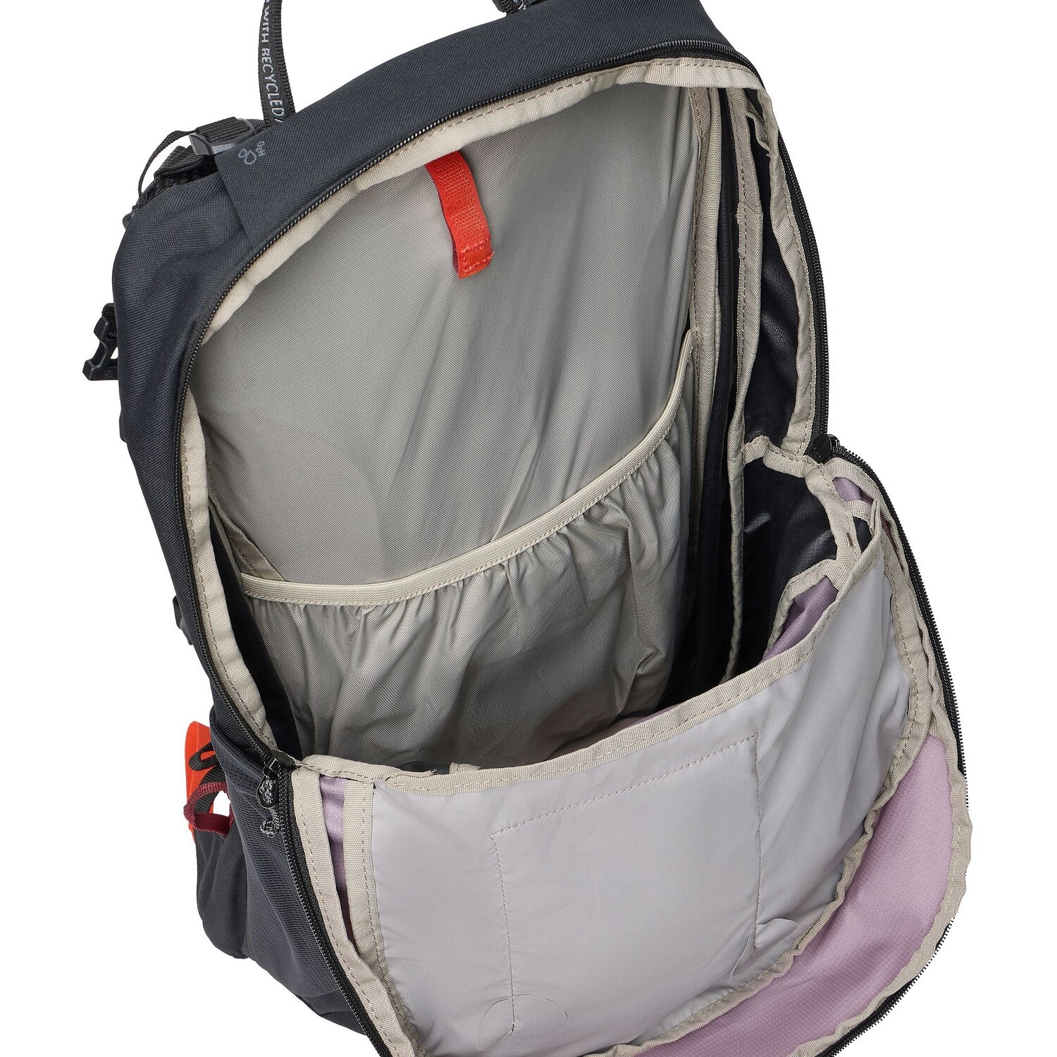 - Features: Zipper compartment, Water bottle compartment, Waist belt, Padded back, Inside pocket(s), Exterior pocket(s), Ergonomically shaped, Equipment loop, compression straps, compatible with hydration system, Chest strap