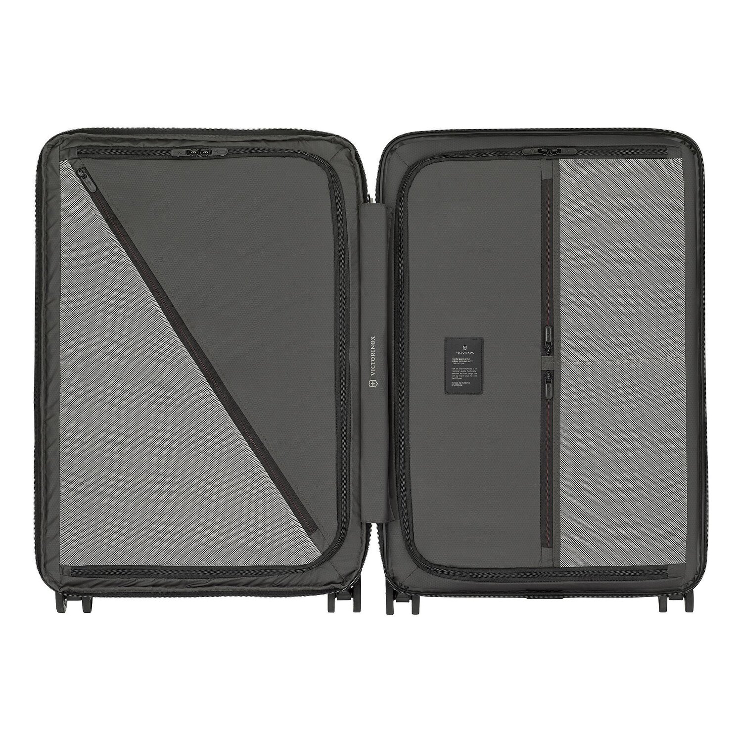 The Victorinox trolley made of durable polycarbonate is an indispensable travel accessory for men, women, frequent flyers and globetrotters. With two laundry compartments, a cross-body strap and three zipped compartments on the inside as well as a lockable telescopic handle, two carrying handles and an expandable fold on the outside, it offers first-class organization and comfort for every trip.