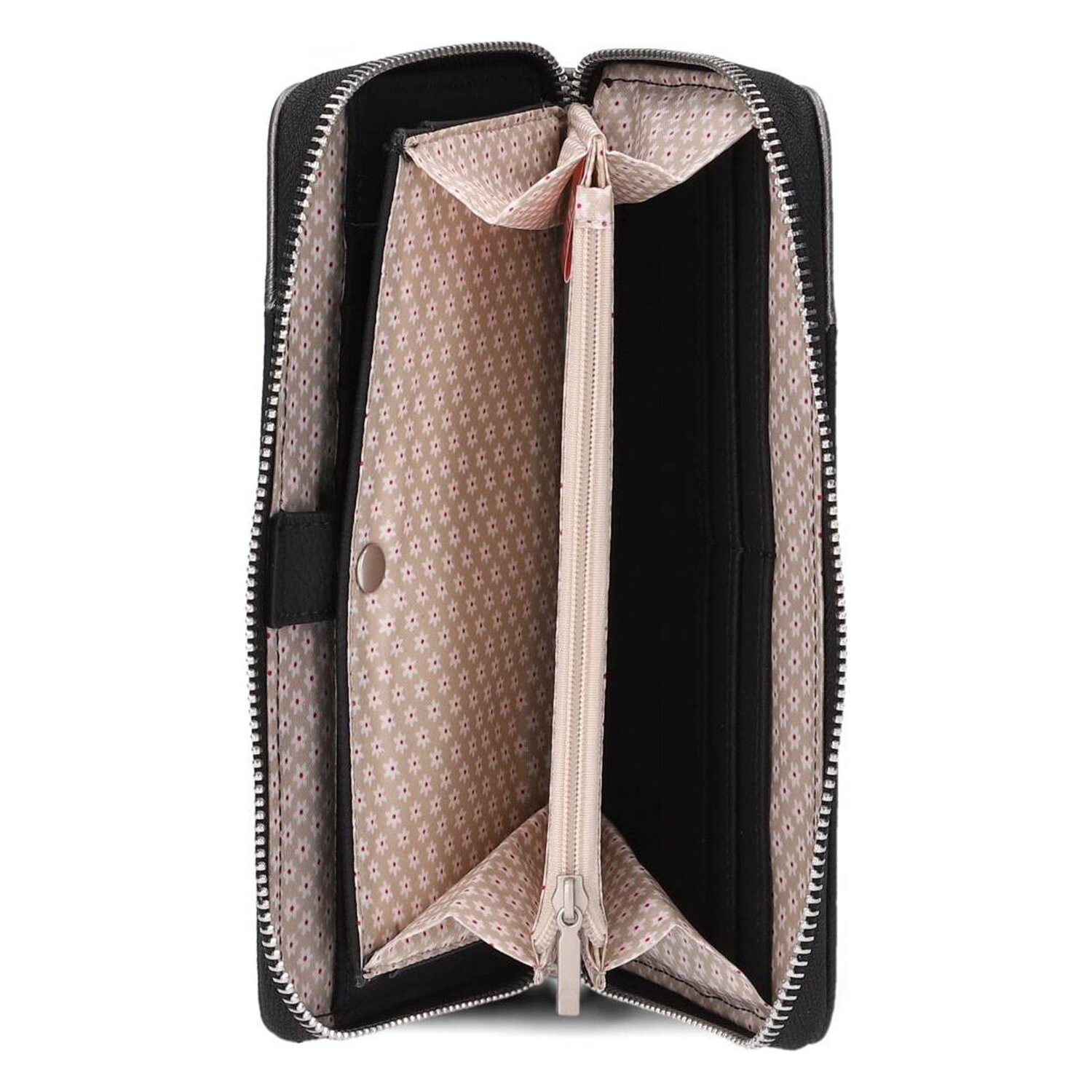 Perfectly shaped elegance meets sophisticated functionality in the Zwei Eva ladies' wallet. It impresses with its clear lines and is an indispensable companion in any handbag. With 15 credit card slots, a coin compartment, two bill compartments and a compartment for your ID, it is the perfect organizer for all your valuables. The sturdy zipper secures the contents and the durable polyurethane material withstands the turmoil of everyday life. The glossy finish pays homage to modern design and makes this wallet a stylish statement. Expand your accessory repertoire with this practical favorite.