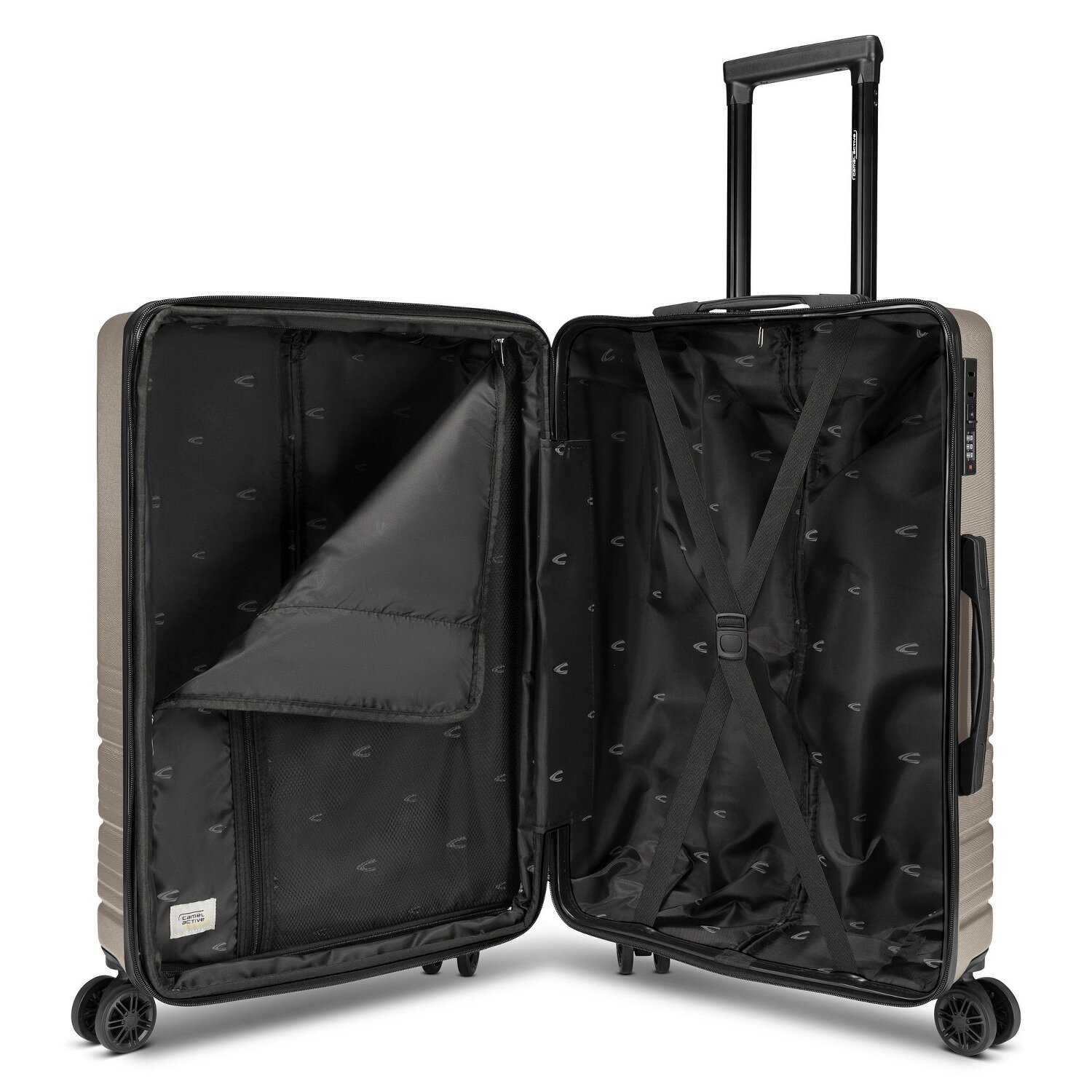 Immerse yourself in the robust beauty of the camel active Hanoi suitcase set. This 3-piece set with hard shell leaves nothing to be desired when traveling. Equipped with 4 wheels for effortless handling, this suitcase set is your reliable companion on every trip. The lockable handle and the useful carrying handle allow for unparalleled flexibility. The interior features a well thought-out space structure with an expansion fold, laundry compartment, cross-body strap and practical zipped compartment. The material, ABS, is characterized by its extreme stability and durability and keeps your travel items safe. Discover the freedom of traveling with camel active Hanoi. Dimensions: 47 cm x 30-33 cm x 78 cm / 41 cm x 27-30 cm x 65 cm / 34 cm x 22-27 cm x 56 cm - Volume: 99 L / 65 L / 38 L - Weight: 4.18 kg / 3.36 kg / 2.9 kg