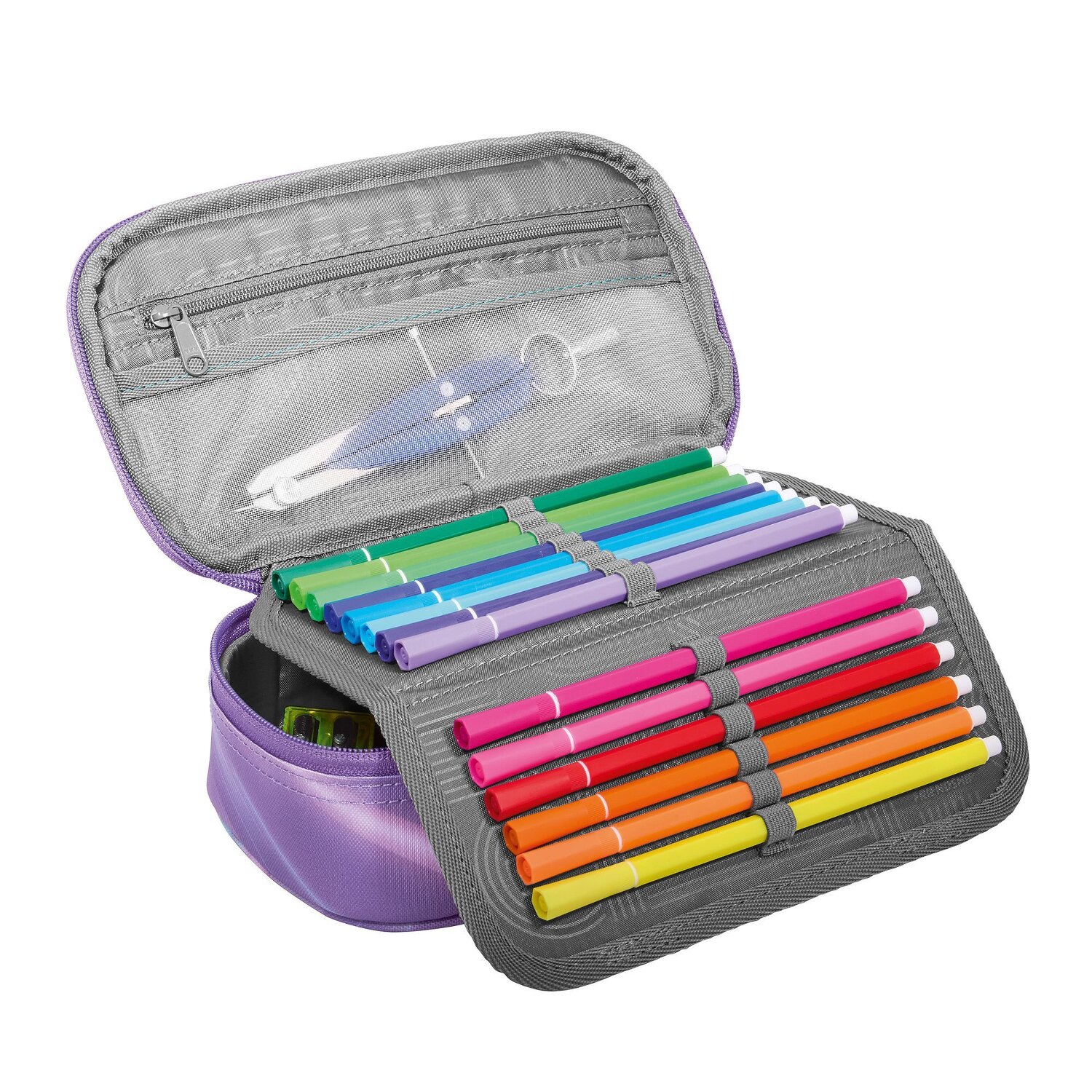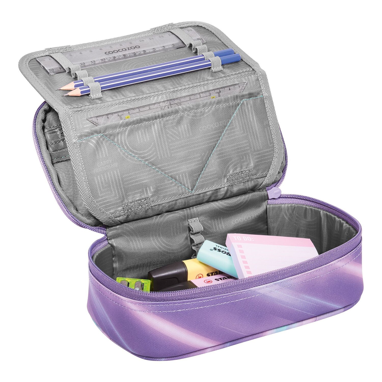 It's a fun way to start lessons: the coocazoo pencil case will be your constant companion! A special highlight are the various pen pockets, where every writing utensil finds its place. Equipped with a zippered compartment, mesh pocket and a useful equipment loop, the pencil case is a real all-rounder. The robust zipper opens and closes easily - perfect for quickly accessing your pens. The hard-wearing polyester makes it durable and resistant. Not only the perfect organizer, but also a cool accessory for every little school master! Only the ruler and a set square are included. Pictures may differ from the scope of delivery.