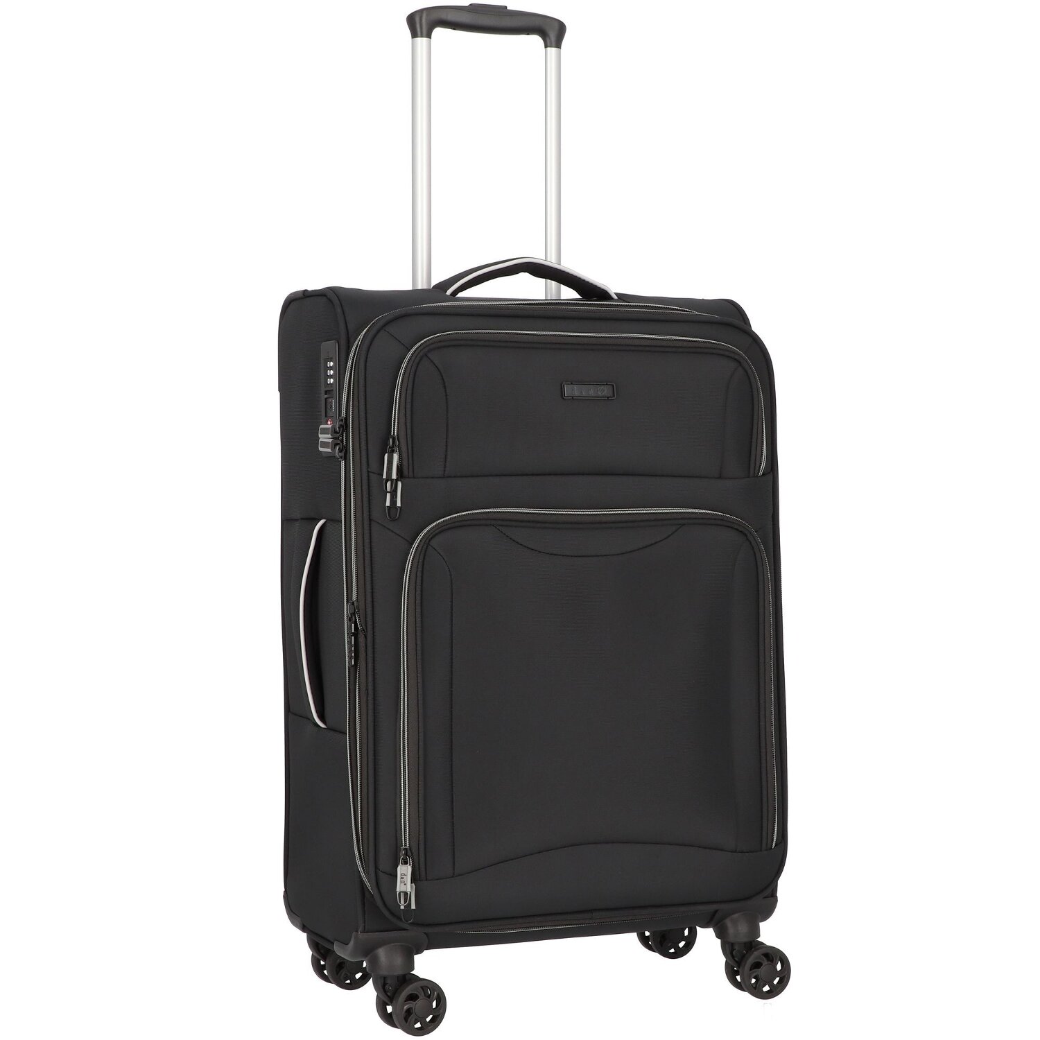 Lightweight trolley from d & h the Travel Line 9204 made of durable polyester. The trolley has a spacious main compartment with laundry compartment and a zippered compartment, as well as two front pockets and thus offers plenty of space and good organization. The lockable handle and the four smooth-running wheels make this trolley a faithful companion when traveling. Equipped with TSA lock.