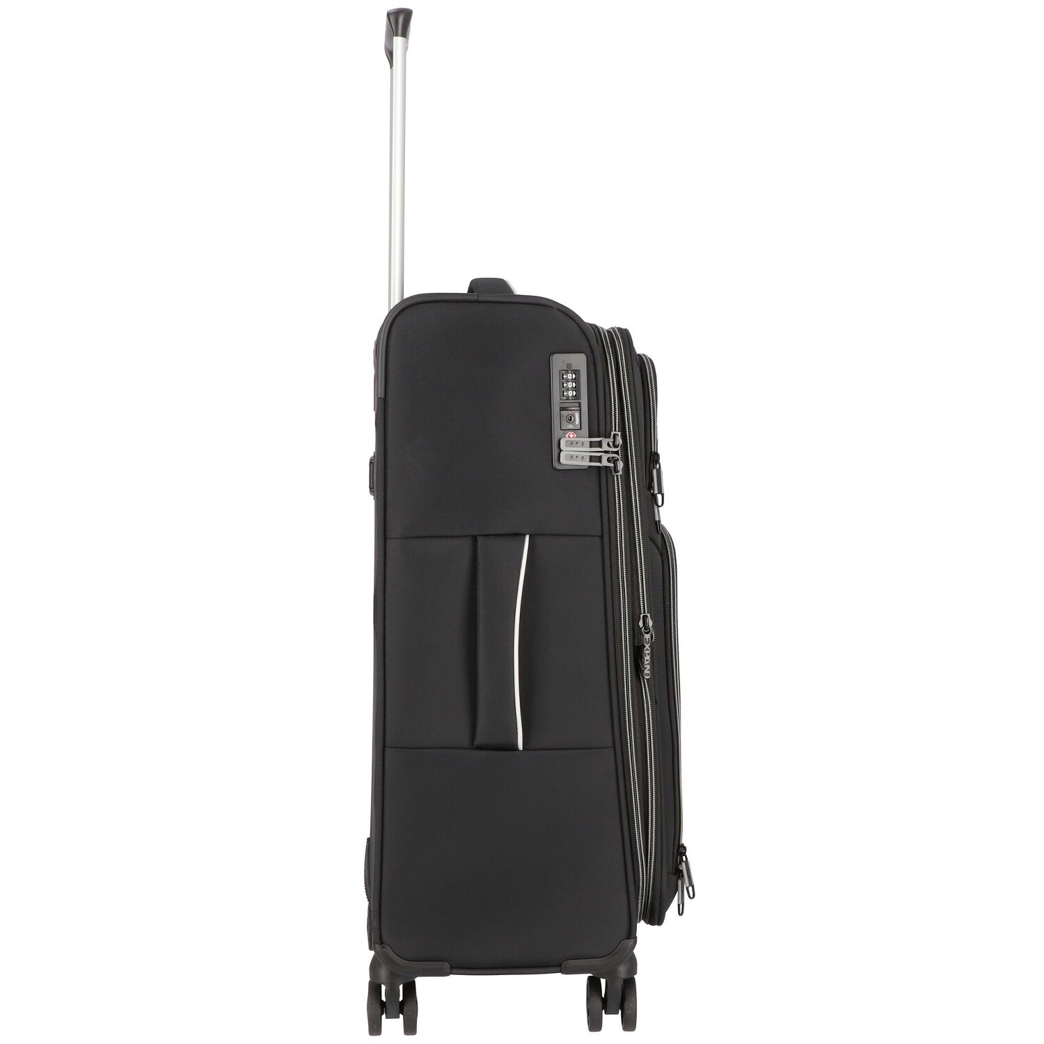 - Features: Zipper compartment, Lockable handle, Laundry compartment, Exterior pocket(s), Expandable