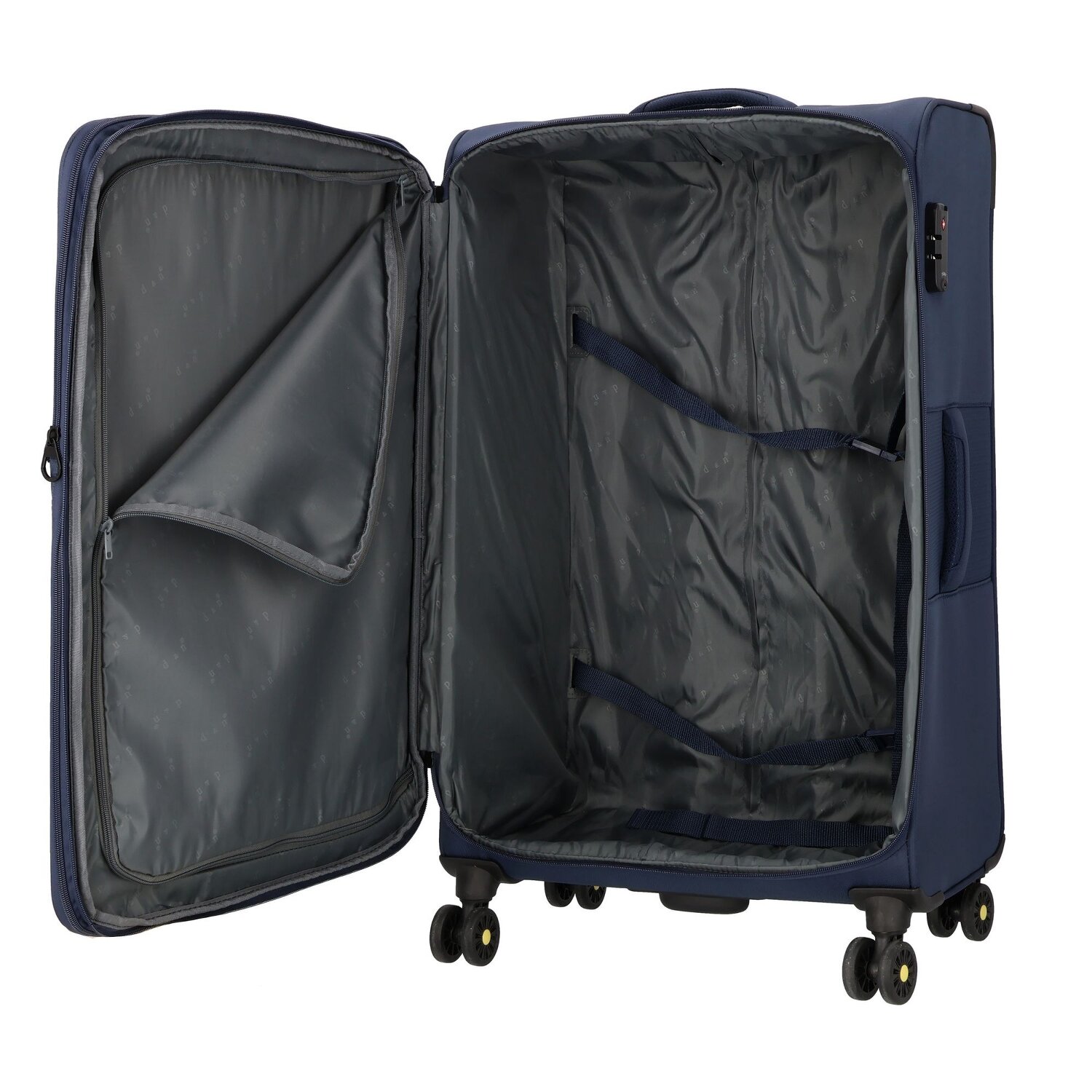 Ready for a new journey? The trolley with 4 wheels from the d & n Travel Line series is now waiting for you! Made from durable and lightweight nylon, this piece of luggage offers a range of well thought-out features. Keep your clothes tidy with internal packing straps and a practical laundry compartment. The extendable, lockable handle and additional carry handle ensure comfort at every step of your journey. With exterior pockets for quick access and an expandable gusset for extended storage space, everything is well organized. Travel with peace of mind thanks to the integrated TSA lock. Make your next trip easier and more elegant with the d & n Travel Line 4-wheel trolley. Thanks to the expansion fold, the suitcase can be extended to a width of 33 cm.